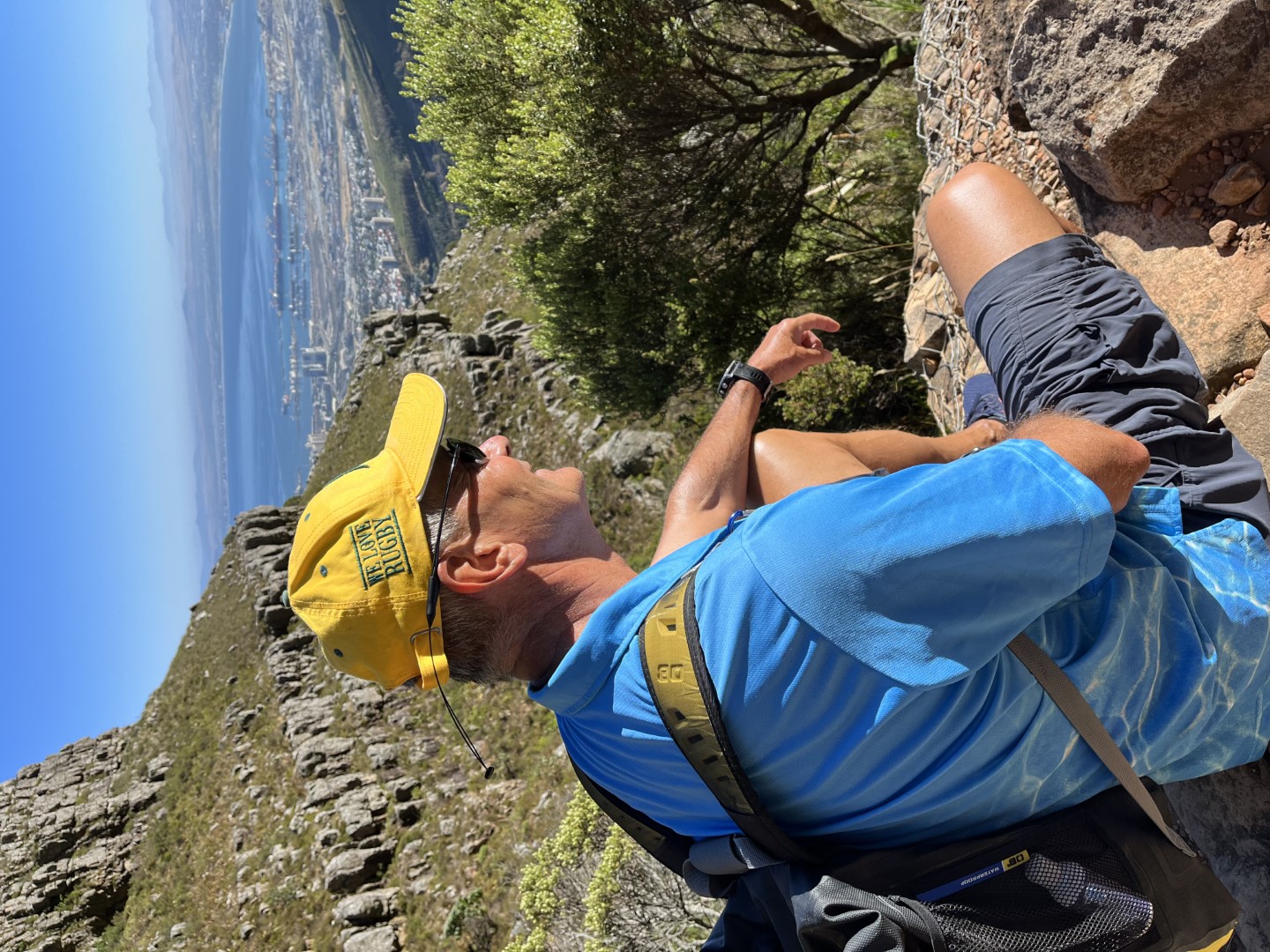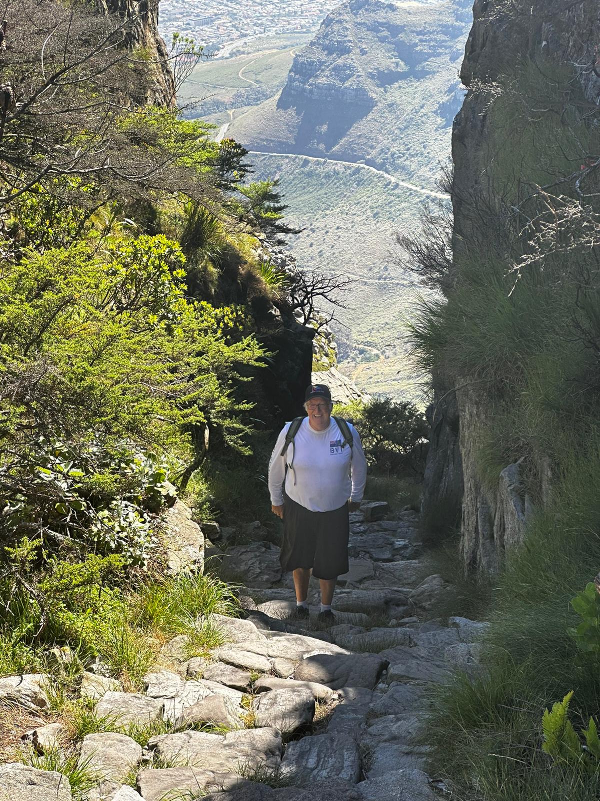 1) Hiking up Table Mountain. Walter (Fat Kat II) and I made our way up the Platteklip Gorge trail from the lower cable car base station to the top of Table Mountain. This was a challenging hike, and we were rewarded by spectacular 360-degree views.