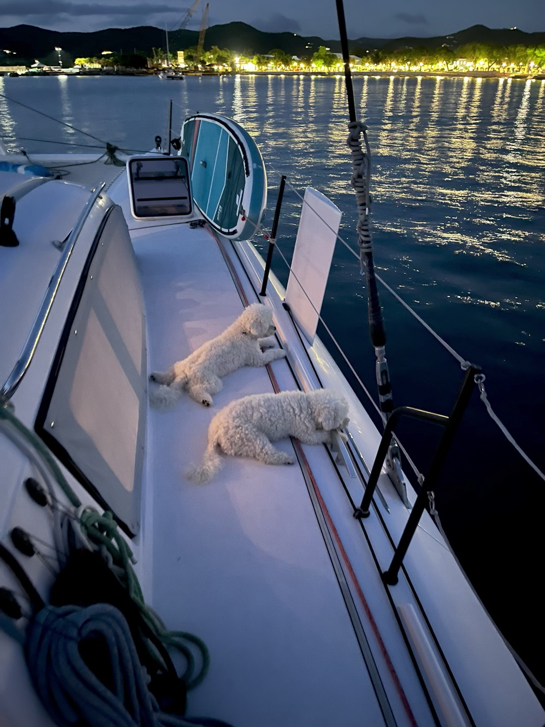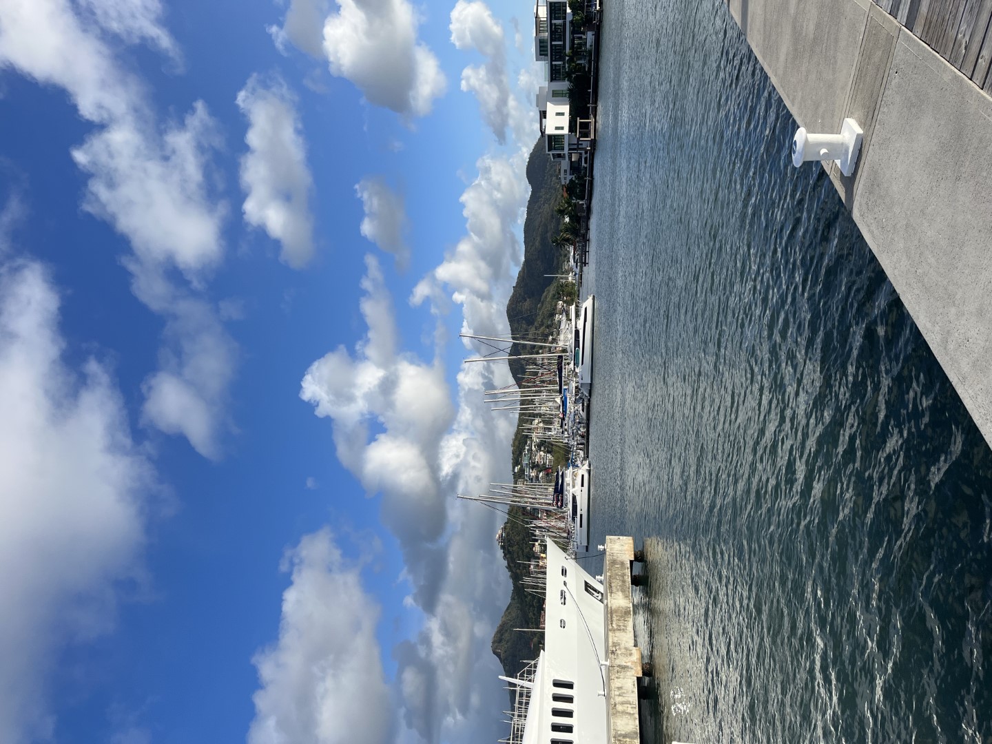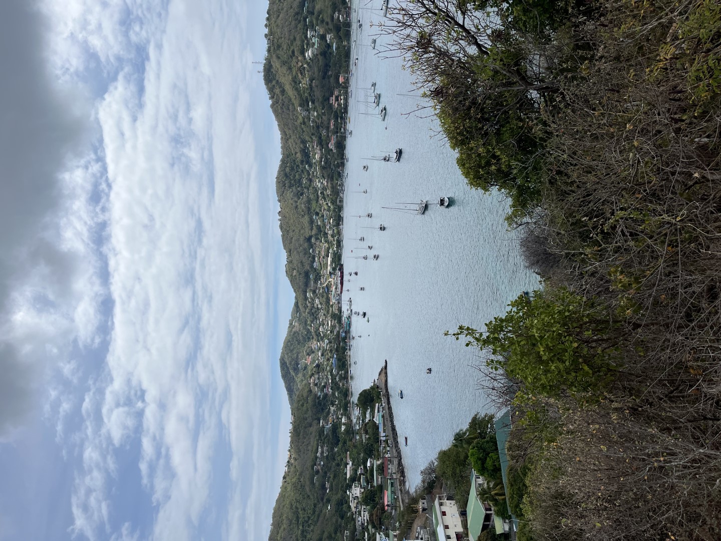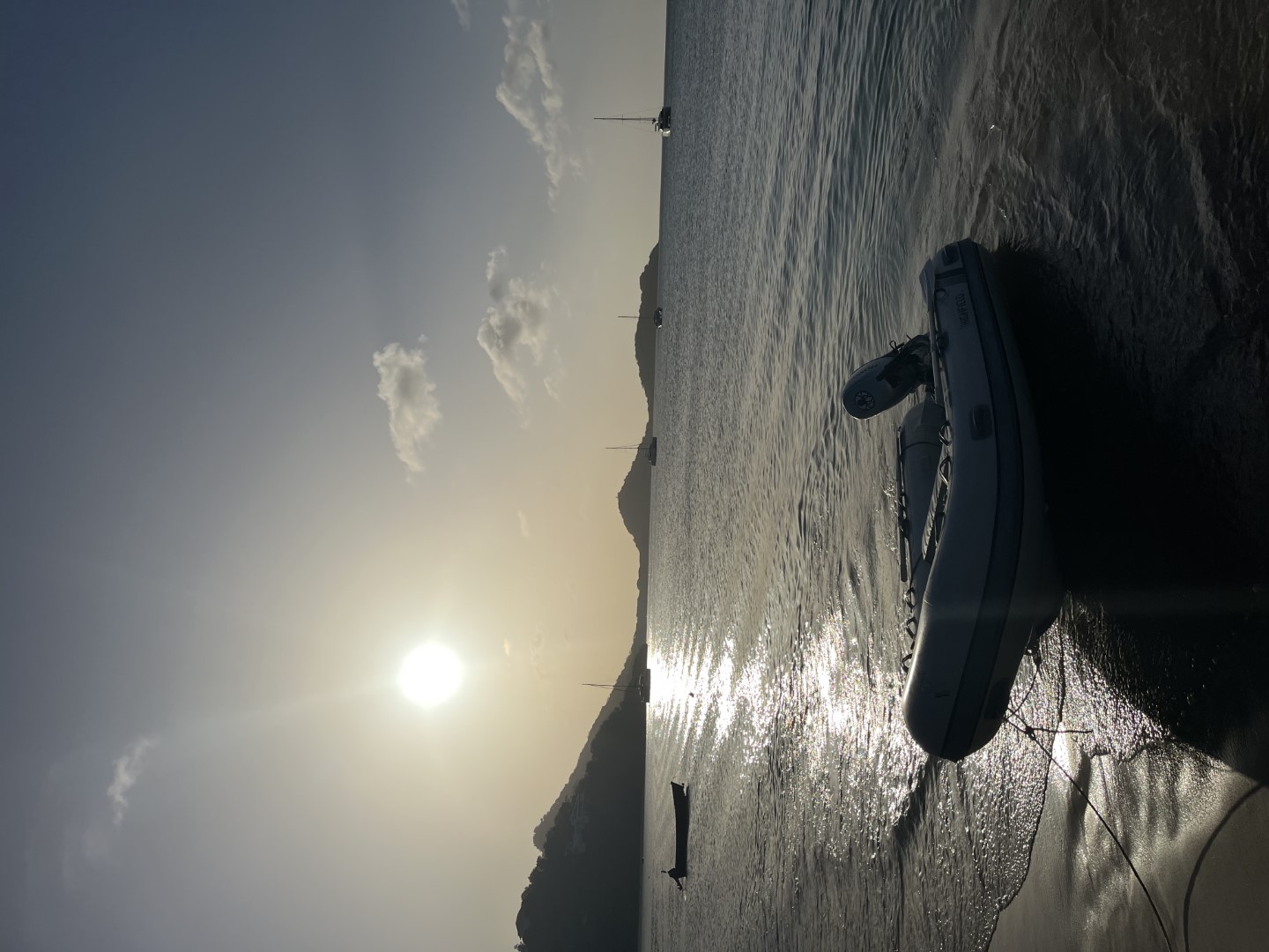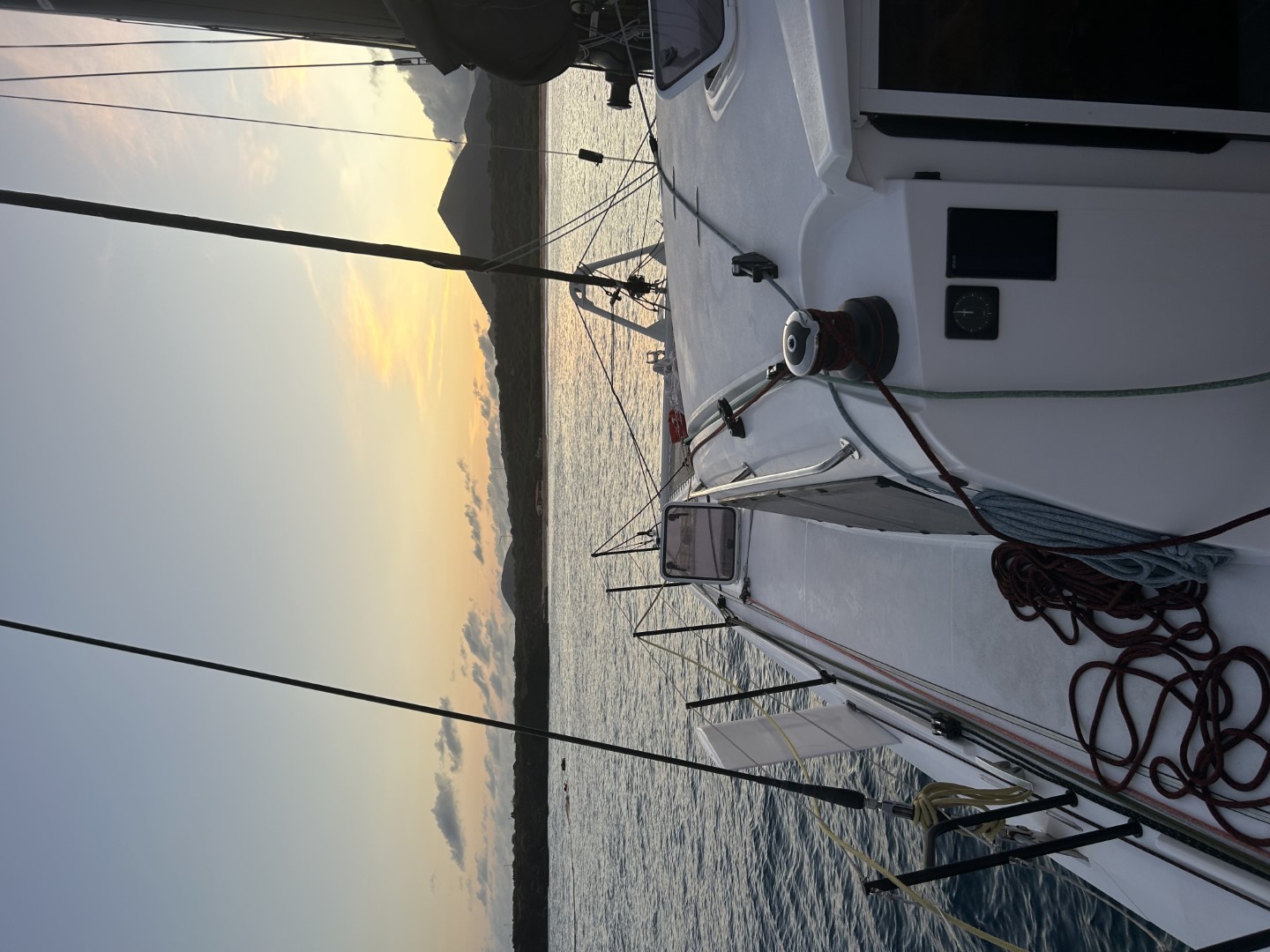 We arrived at night, as usual for Leviathan. I may have made this observation before, but it bears repeating: why don’t we adjust our speed to arrive during daylight? To answer this, I must invoke Yong’s first rule of sailing: When you have wind, you take it! So, we take the wind as it comes. You would think that statistically we would have even odds for a daylight arrival, but our experience has shown that we have a better than 80% chance of a nighttime arrival. Anyway, this arrival was particularly challenging. There was a new moon (i.e., no moonlight) and we had to maneuver through a minefield of boats which occupied a mooring field positioned outside of the anchorage. Yong stood at the bow with a spotlight and guided us as we crept along, weaving our way through the maze. Eventually, we anchored safely and had a peaceful night.