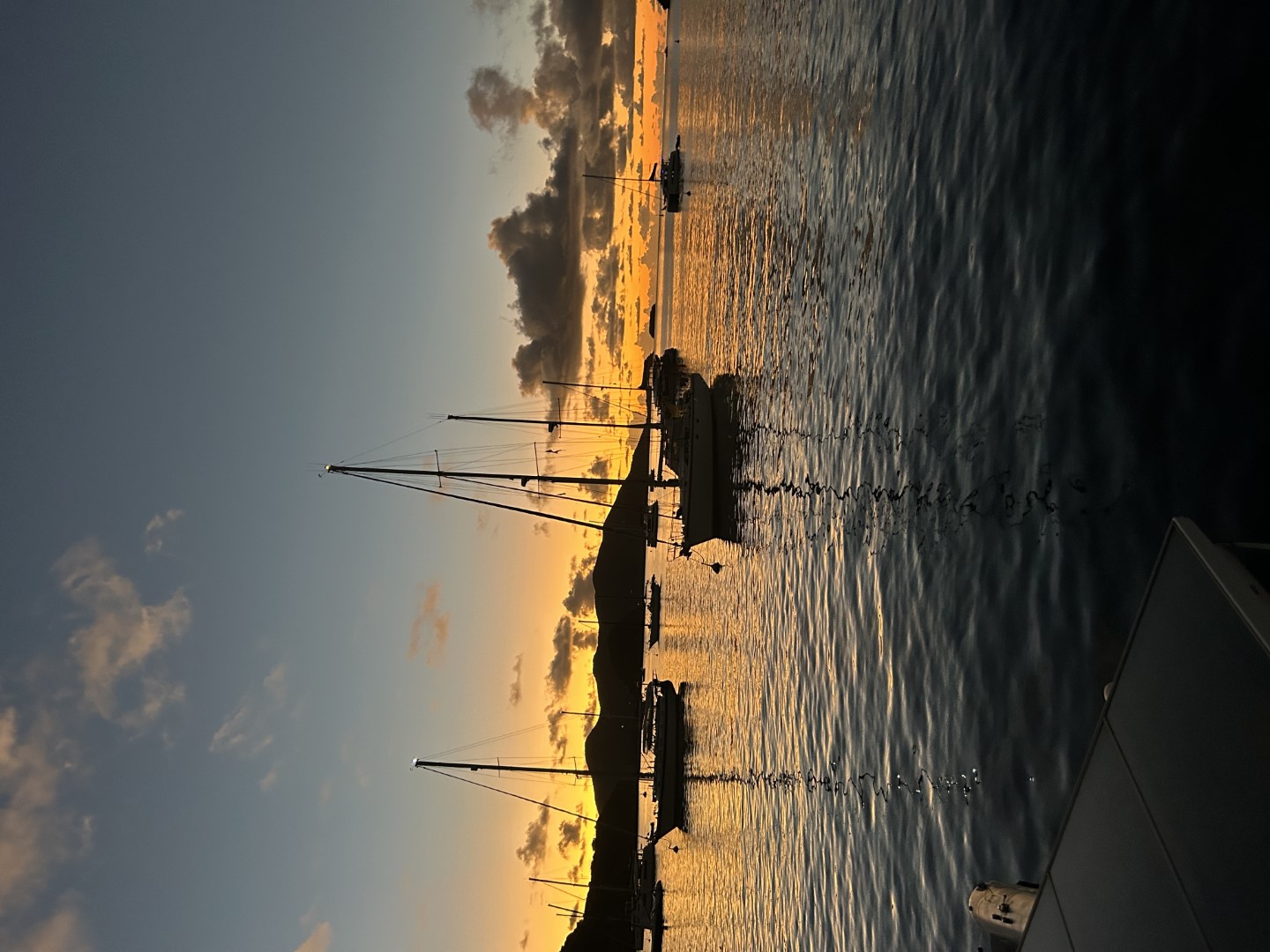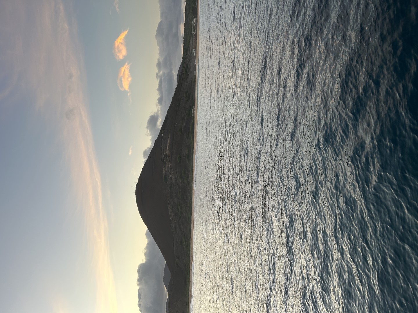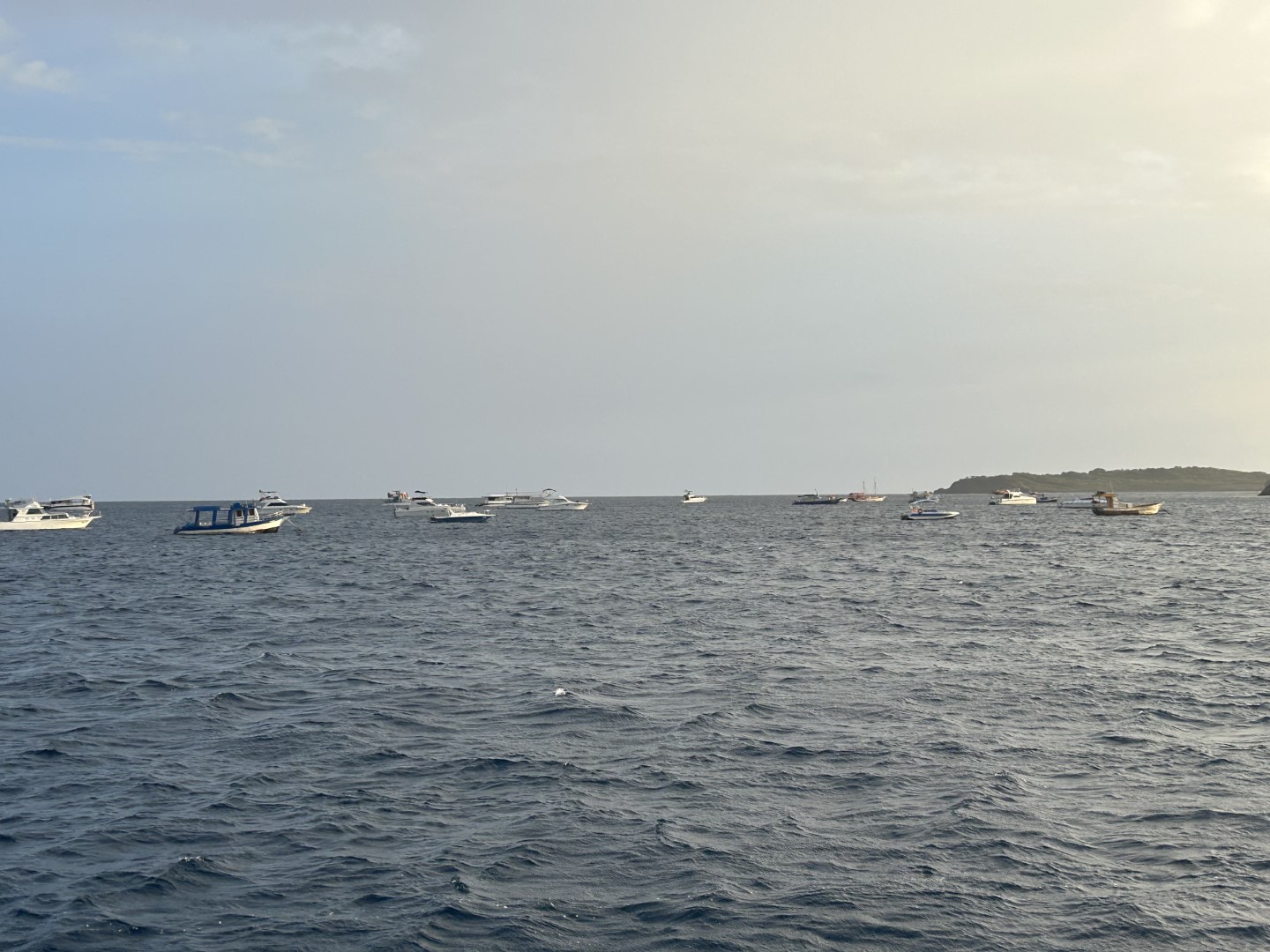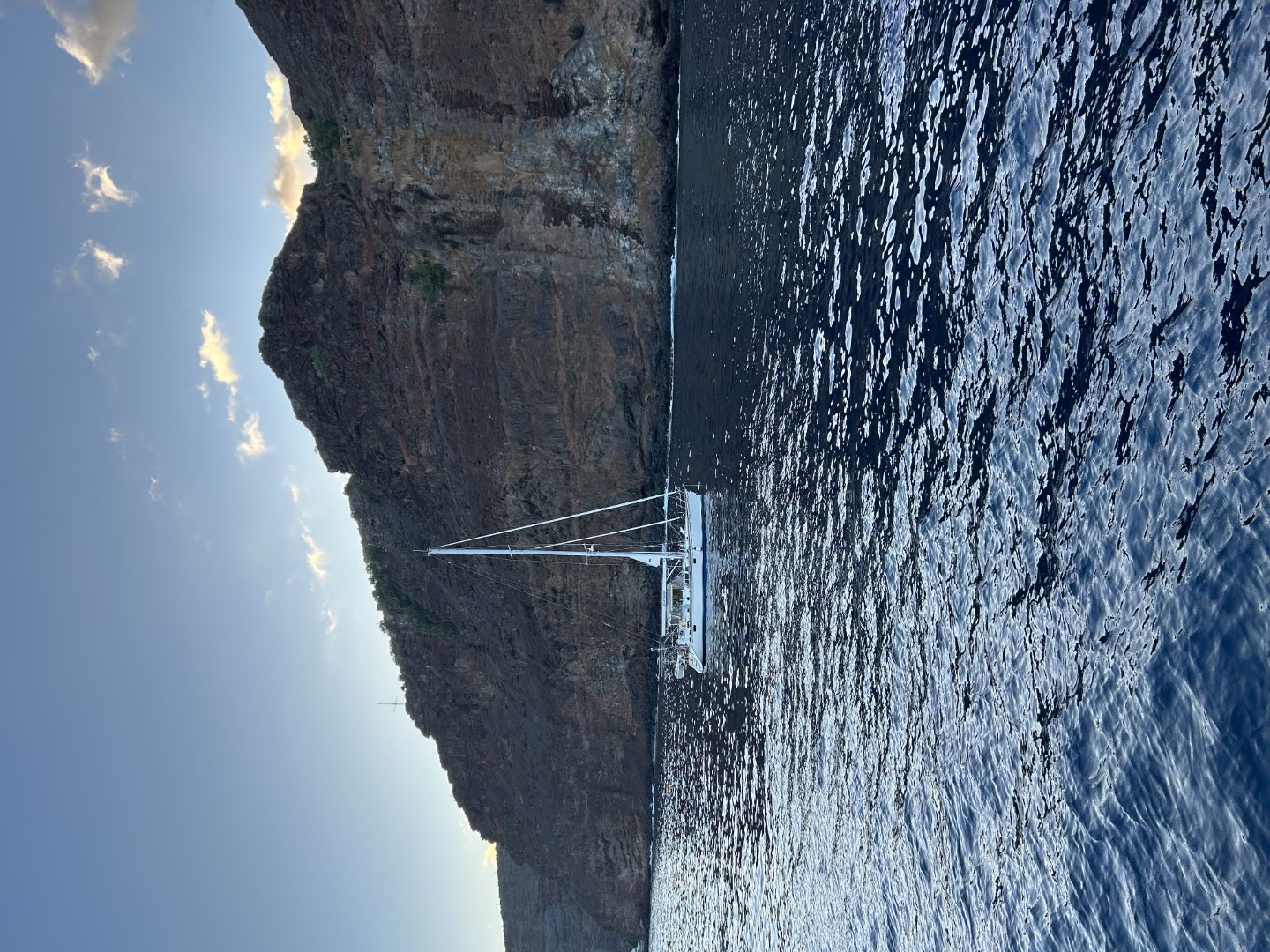 We arrived at night, as usual for Leviathan. I may have made this observation before, but it bears repeating: why don’t we adjust our speed to arrive during daylight? To answer this, I must invoke Yong’s first rule of sailing: When you have wind, you take it! So, we take the wind as it comes. You would think that statistically we would have even odds for a daylight arrival, but our experience has shown that we have a better than 80% chance of a nighttime arrival. Anyway, this arrival was particularly challenging. There was a new moon (i.e., no moonlight) and we had to maneuver through a minefield of boats which occupied a mooring field positioned outside of the anchorage. Yong stood at the bow with a spotlight and guided us as we crept along, weaving our way through the maze. Eventually, we anchored safely and had a peaceful night.