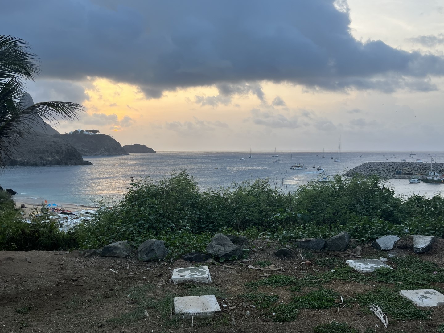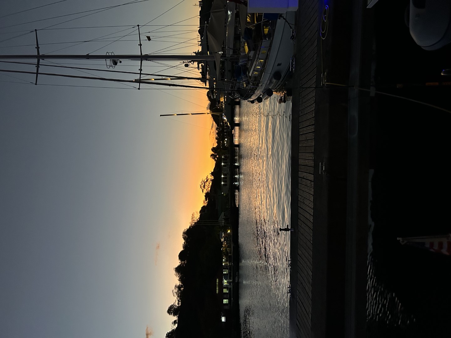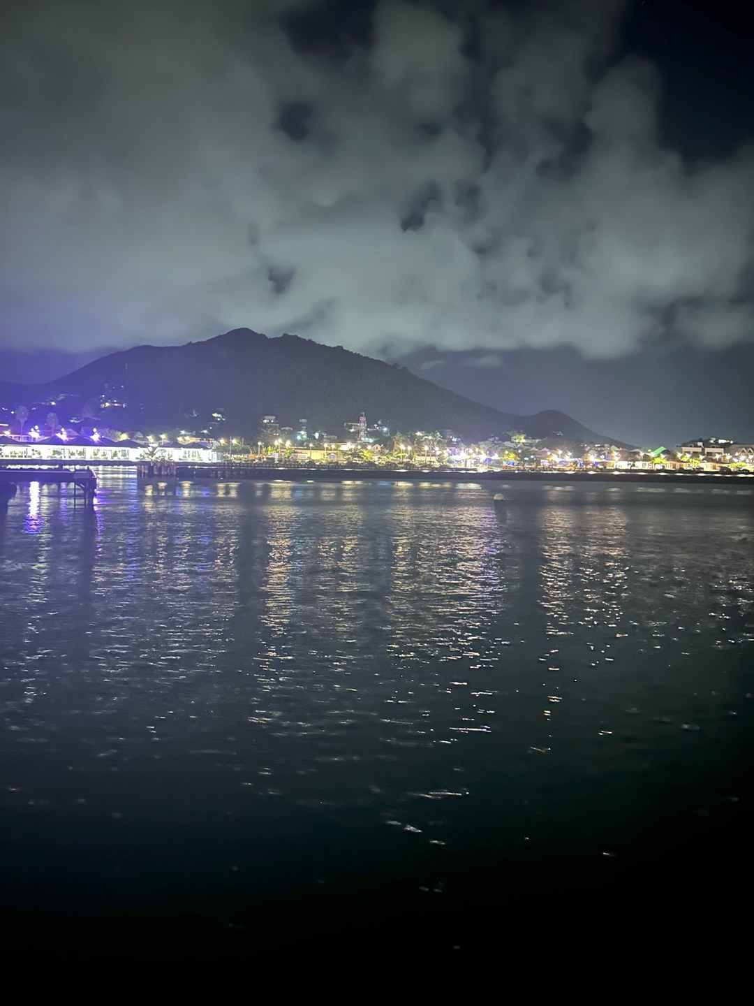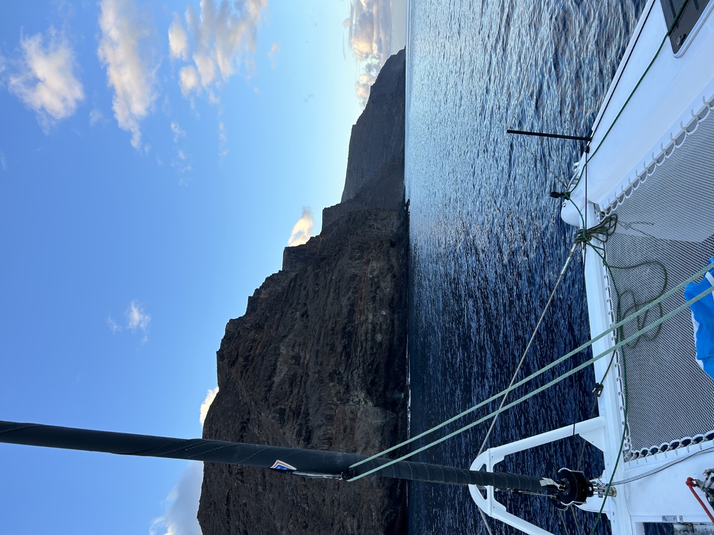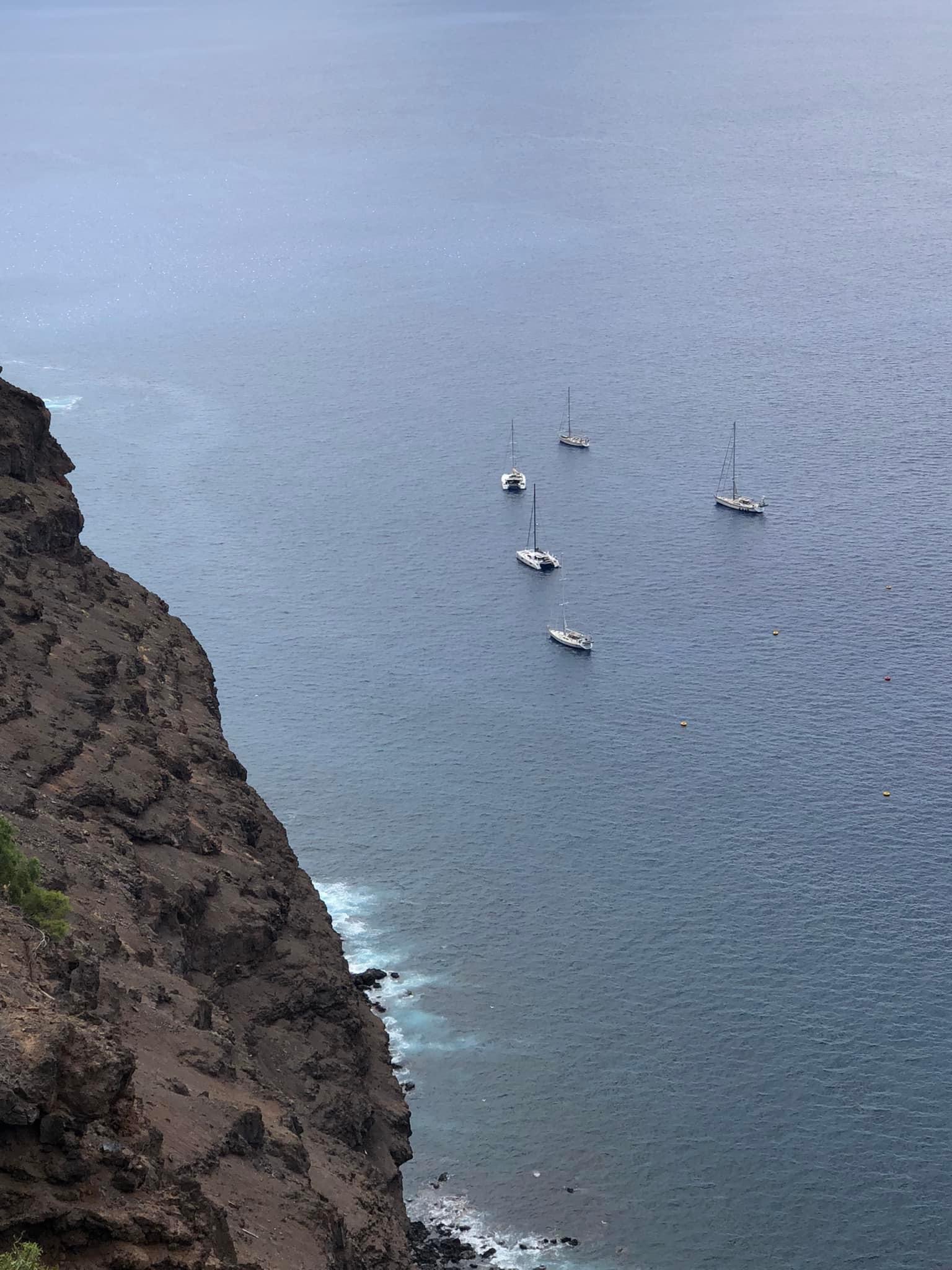 We arrived at night, as usual for Leviathan. I may have made this observation before, but it bears repeating: why don’t we adjust our speed to arrive during daylight? To answer this, I must invoke Yong’s first rule of sailing: When you have wind, you take it! So, we take the wind as it comes. You would think that statistically we would have even odds for a daylight arrival, but our experience has shown that we have a better than 80% chance of a nighttime arrival. Anyway, this arrival was particularly challenging. There was a new moon (i.e., no moonlight) and we had to maneuver through a minefield of boats which occupied a mooring field positioned outside of the anchorage. Yong stood at the bow with a spotlight and guided us as we crept along, weaving our way through the maze. Eventually, we anchored safely and had a peaceful night.