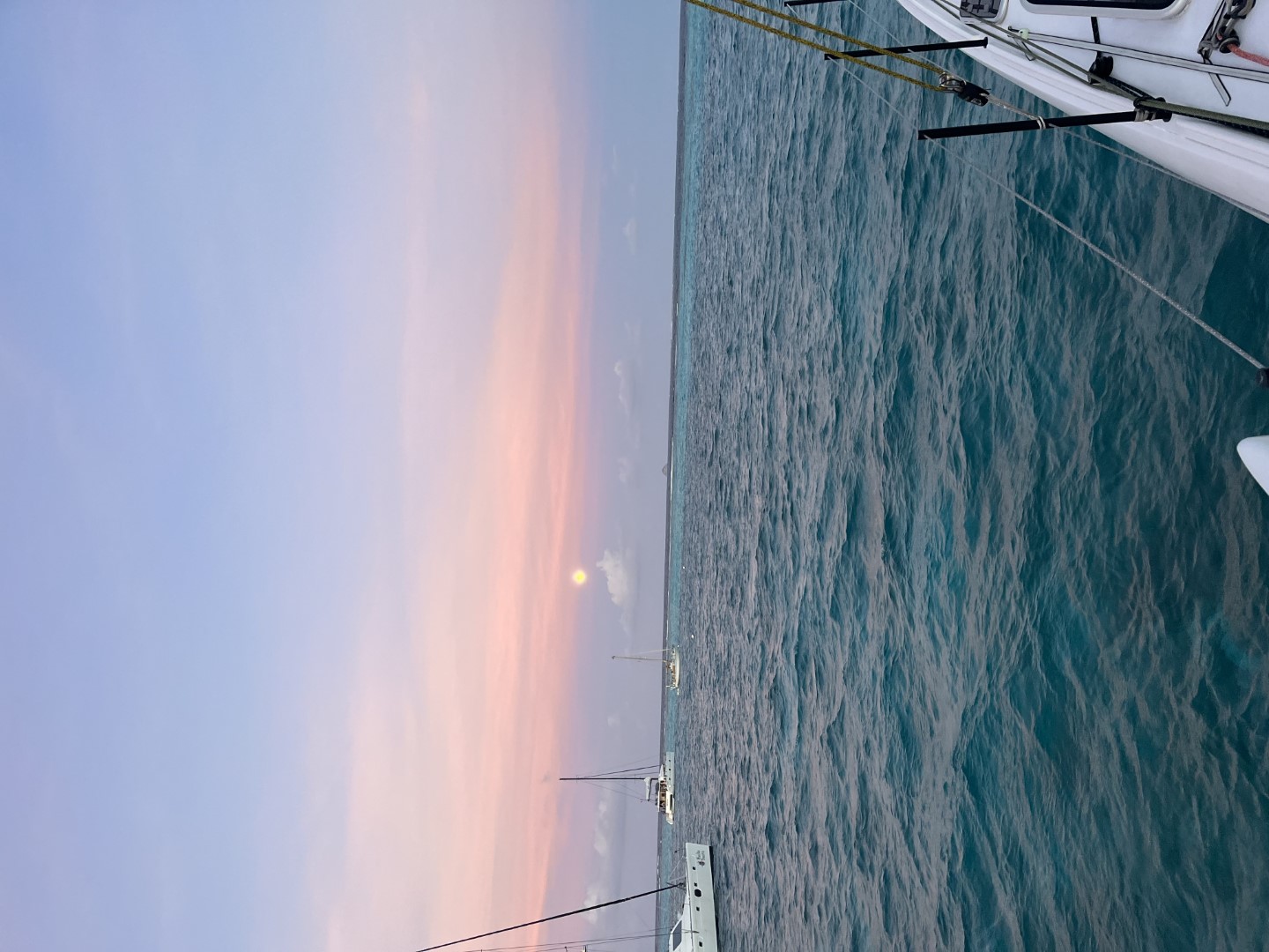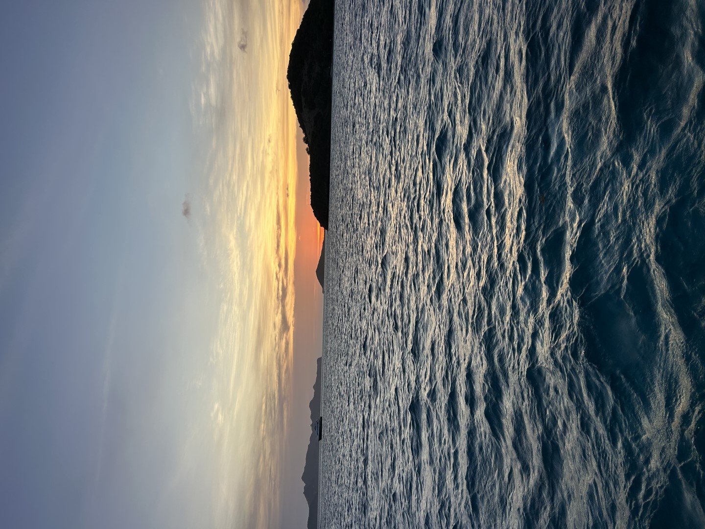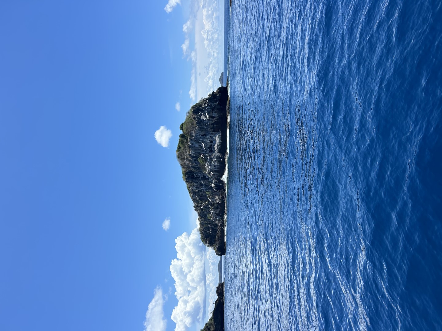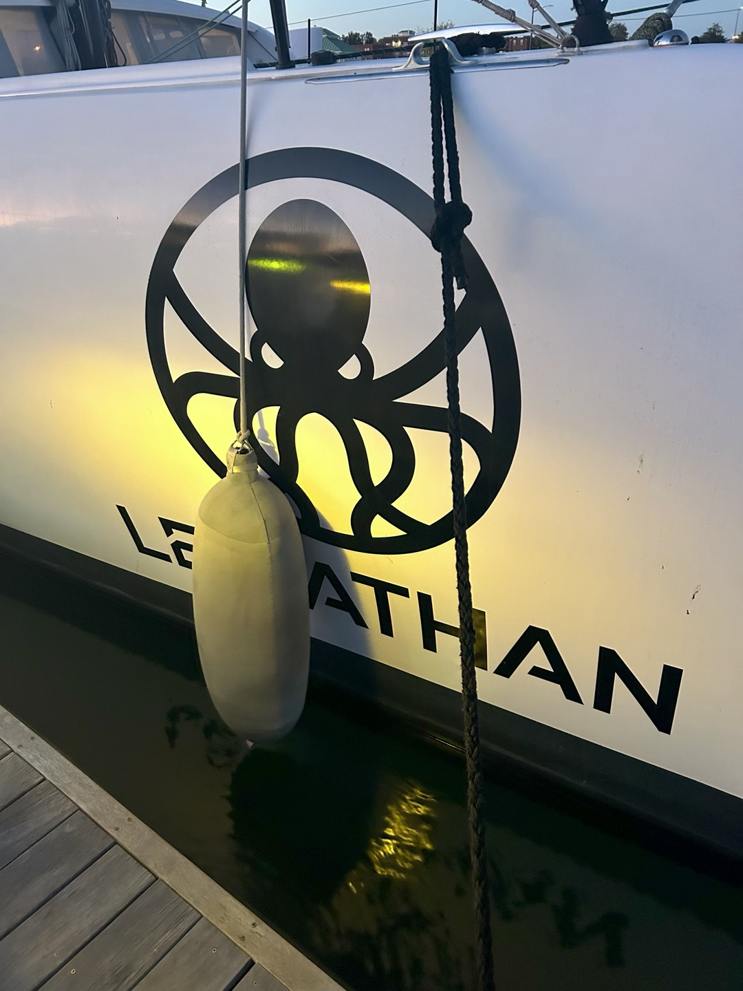 We arrived at night, as usual for Leviathan. I may have made this observation before, but it bears repeating: why don’t we adjust our speed to arrive during daylight? To answer this, I must invoke Yong’s first rule of sailing: When you have wind, you take it! So, we take the wind as it comes. You would think that statistically we would have even odds for a daylight arrival, but our experience has shown that we have a better than 80% chance of a nighttime arrival. Anyway, this arrival was particularly challenging. There was a new moon (i.e., no moonlight) and we had to maneuver through a minefield of boats which occupied a mooring field positioned outside of the anchorage. Yong stood at the bow with a spotlight and guided us as we crept along, weaving our way through the maze. Eventually, we anchored safely and had a peaceful night.