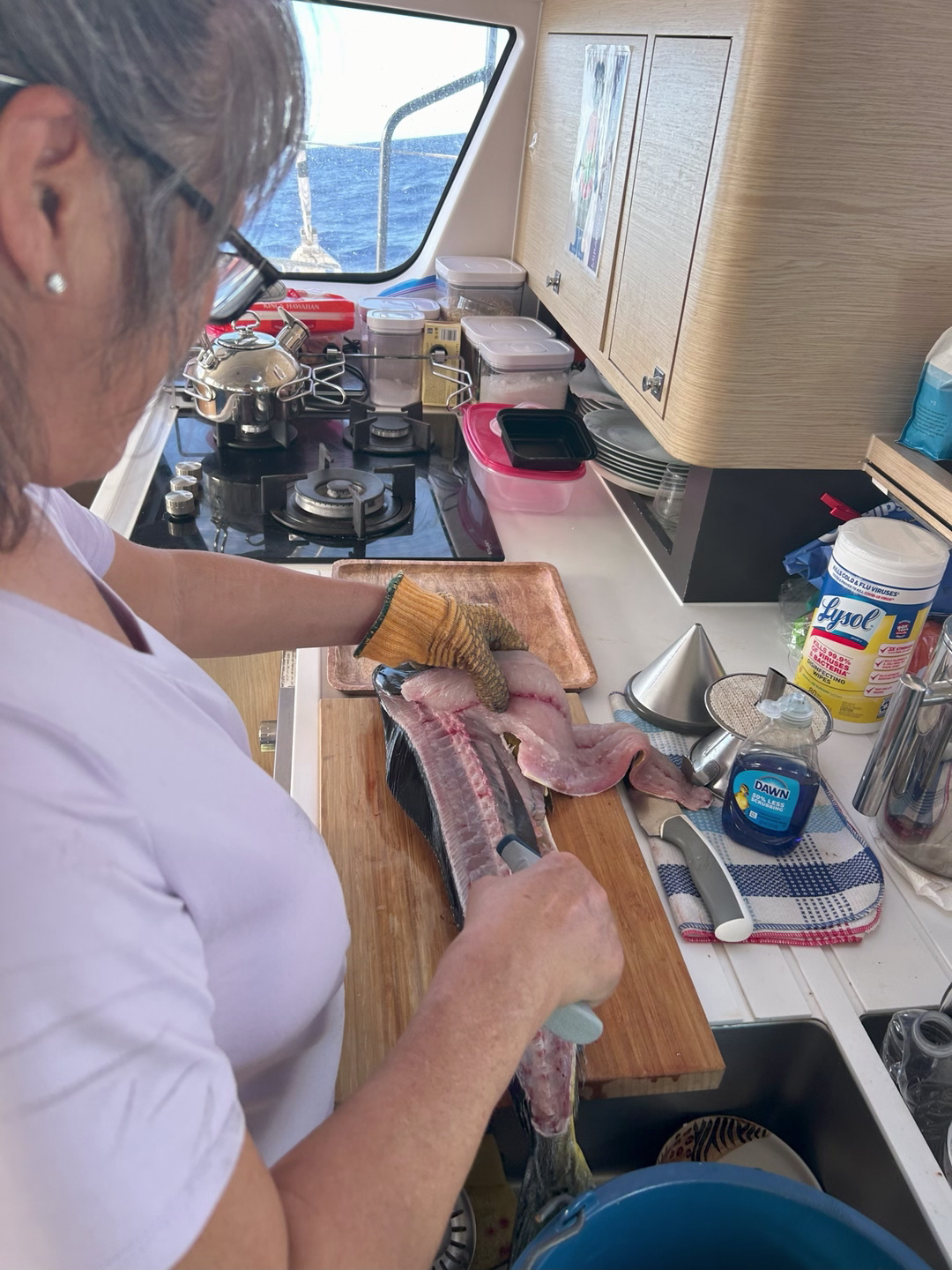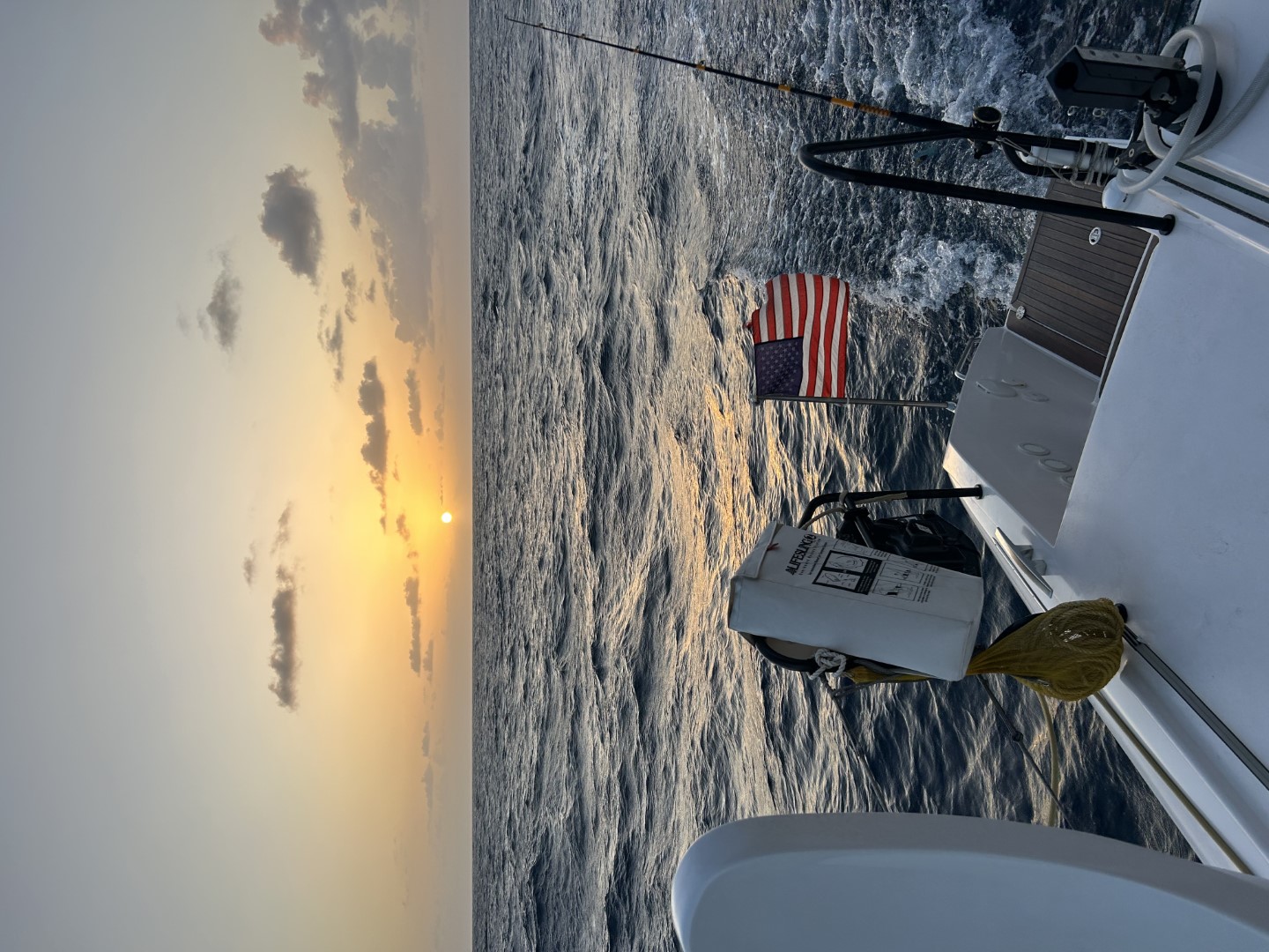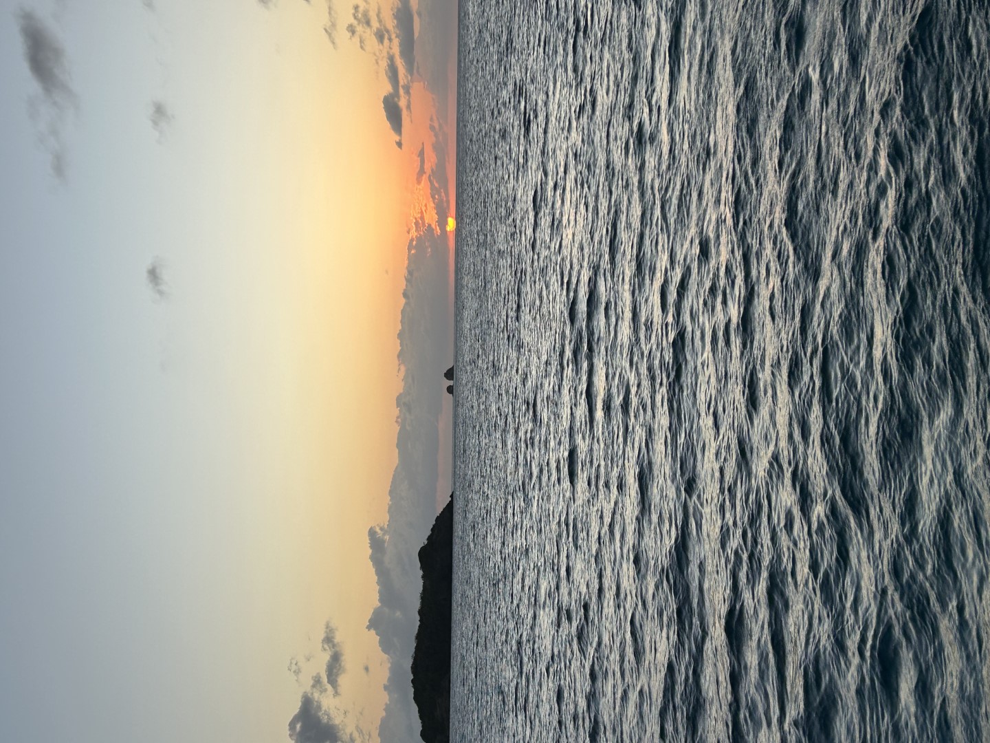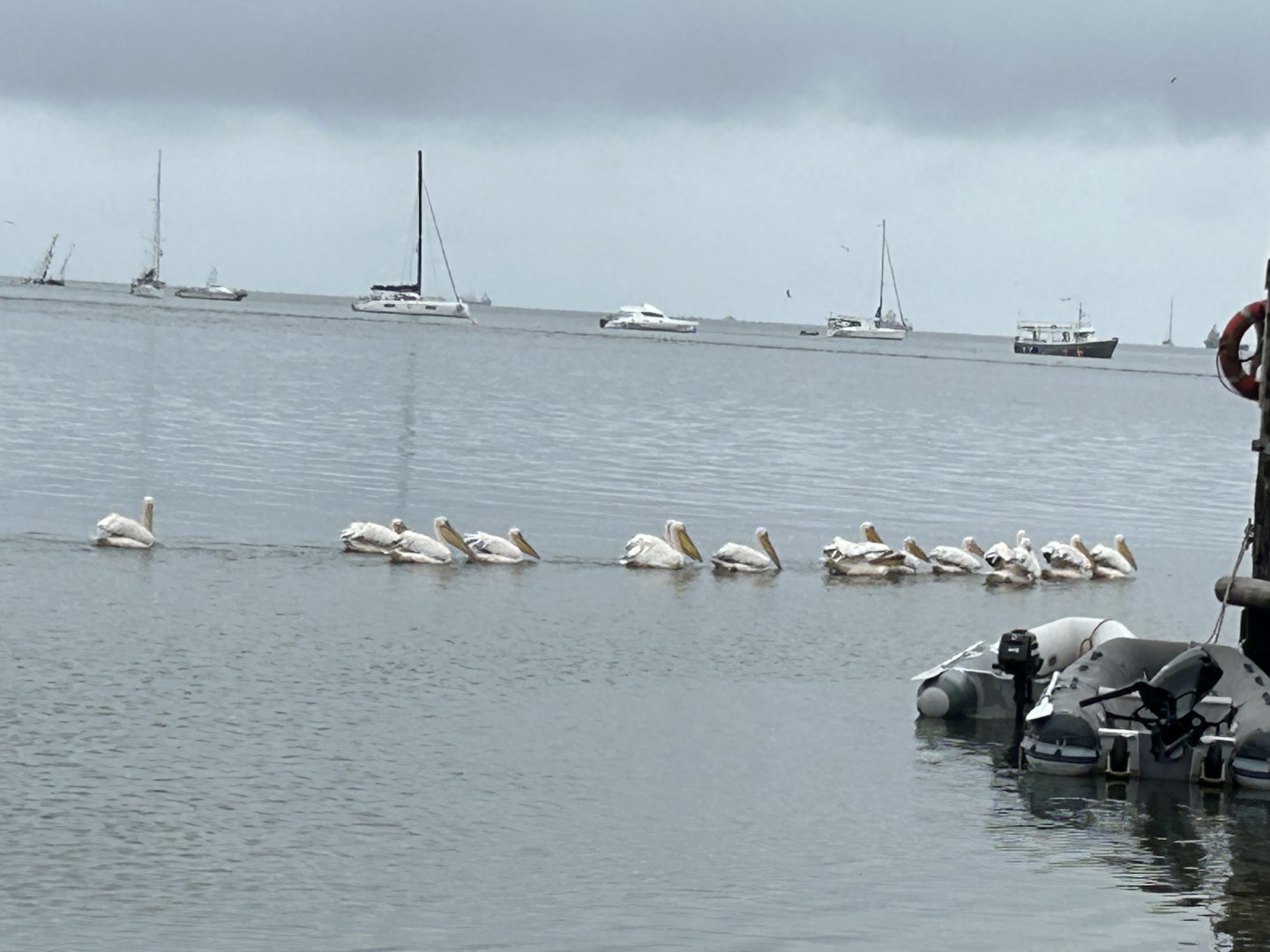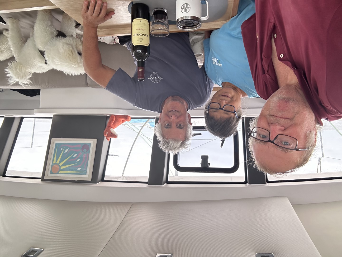 We arrived at night, as usual for Leviathan. I may have made this observation before, but it bears repeating: why don’t we adjust our speed to arrive during daylight? To answer this, I must invoke Yong’s first rule of sailing: When you have wind, you take it! So, we take the wind as it comes. You would think that statistically we would have even odds for a daylight arrival, but our experience has shown that we have a better than 80% chance of a nighttime arrival. Anyway, this arrival was particularly challenging. There was a new moon (i.e., no moonlight) and we had to maneuver through a minefield of boats which occupied a mooring field positioned outside of the anchorage. Yong stood at the bow with a spotlight and guided us as we crept along, weaving our way through the maze. Eventually, we anchored safely and had a peaceful night.