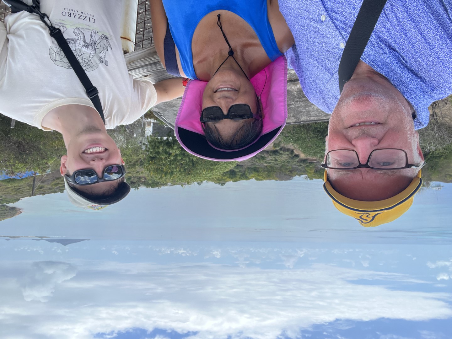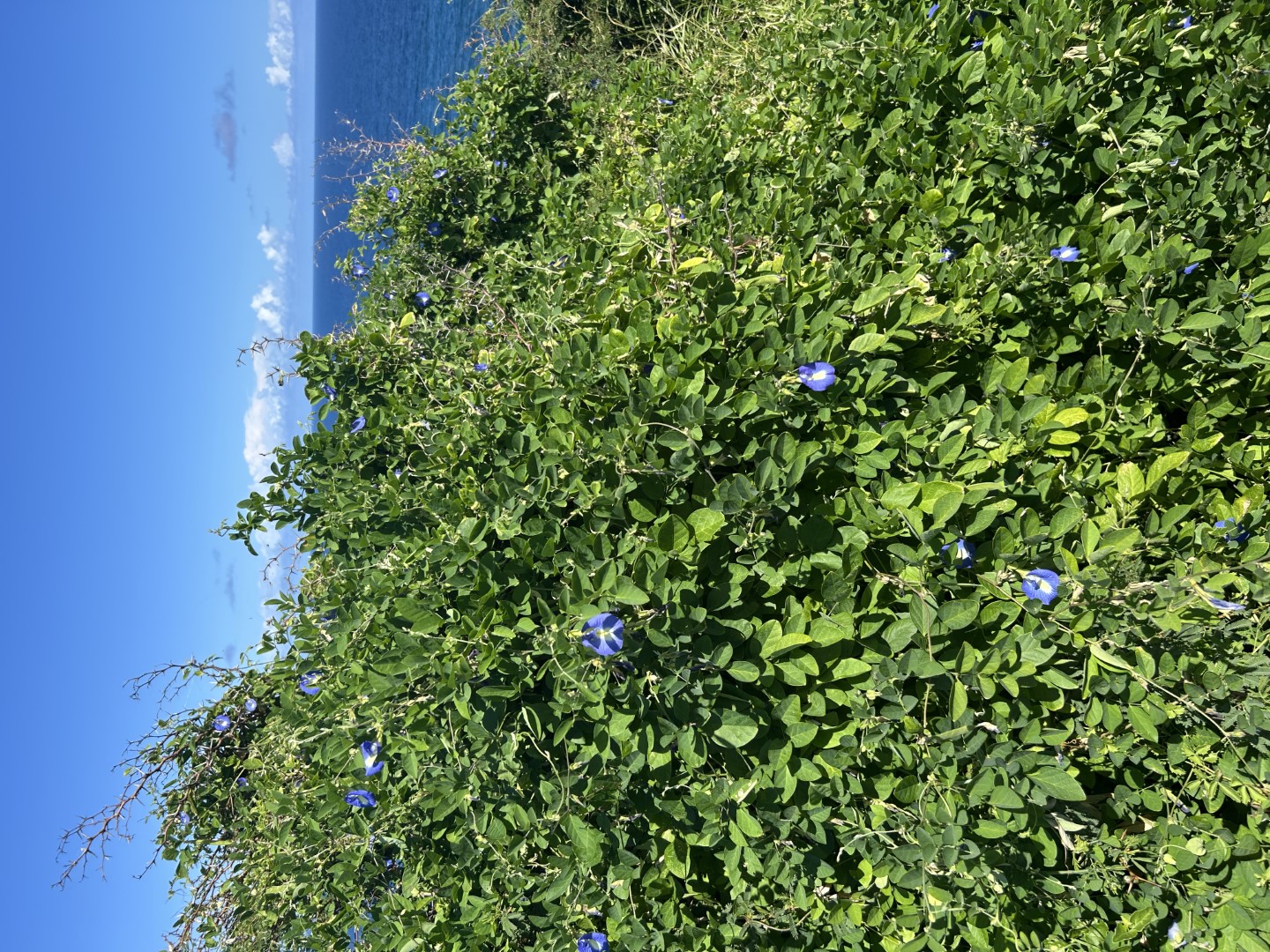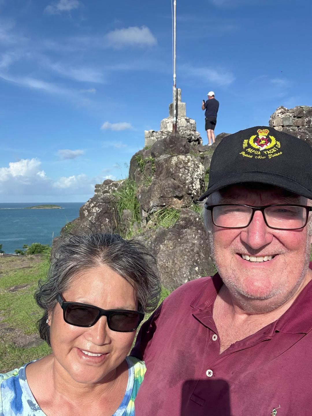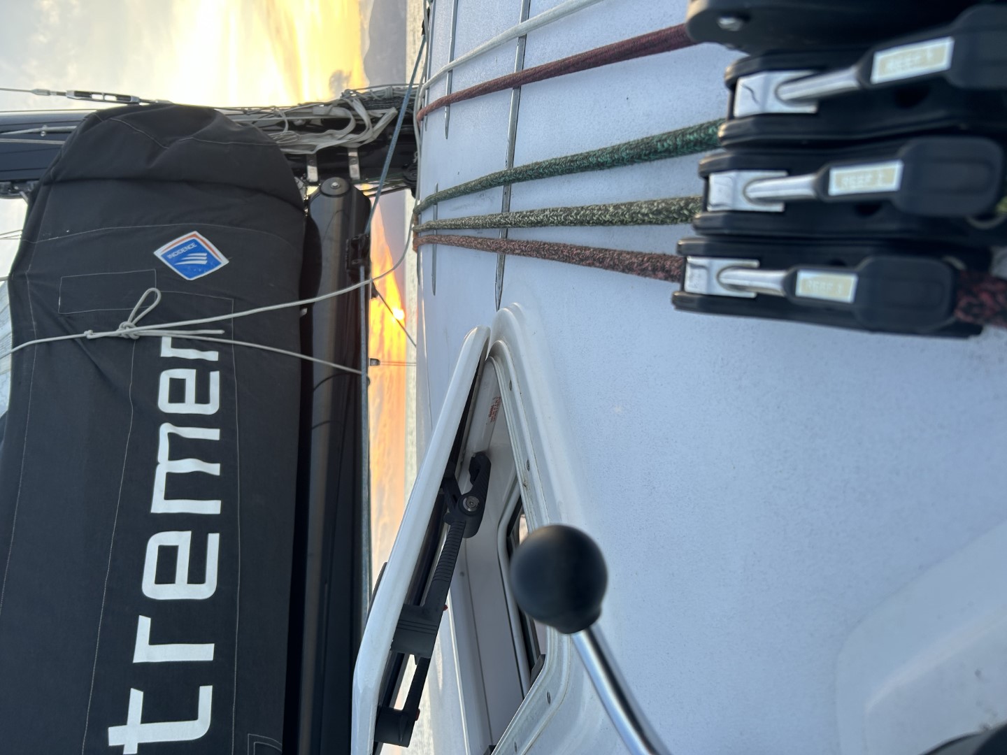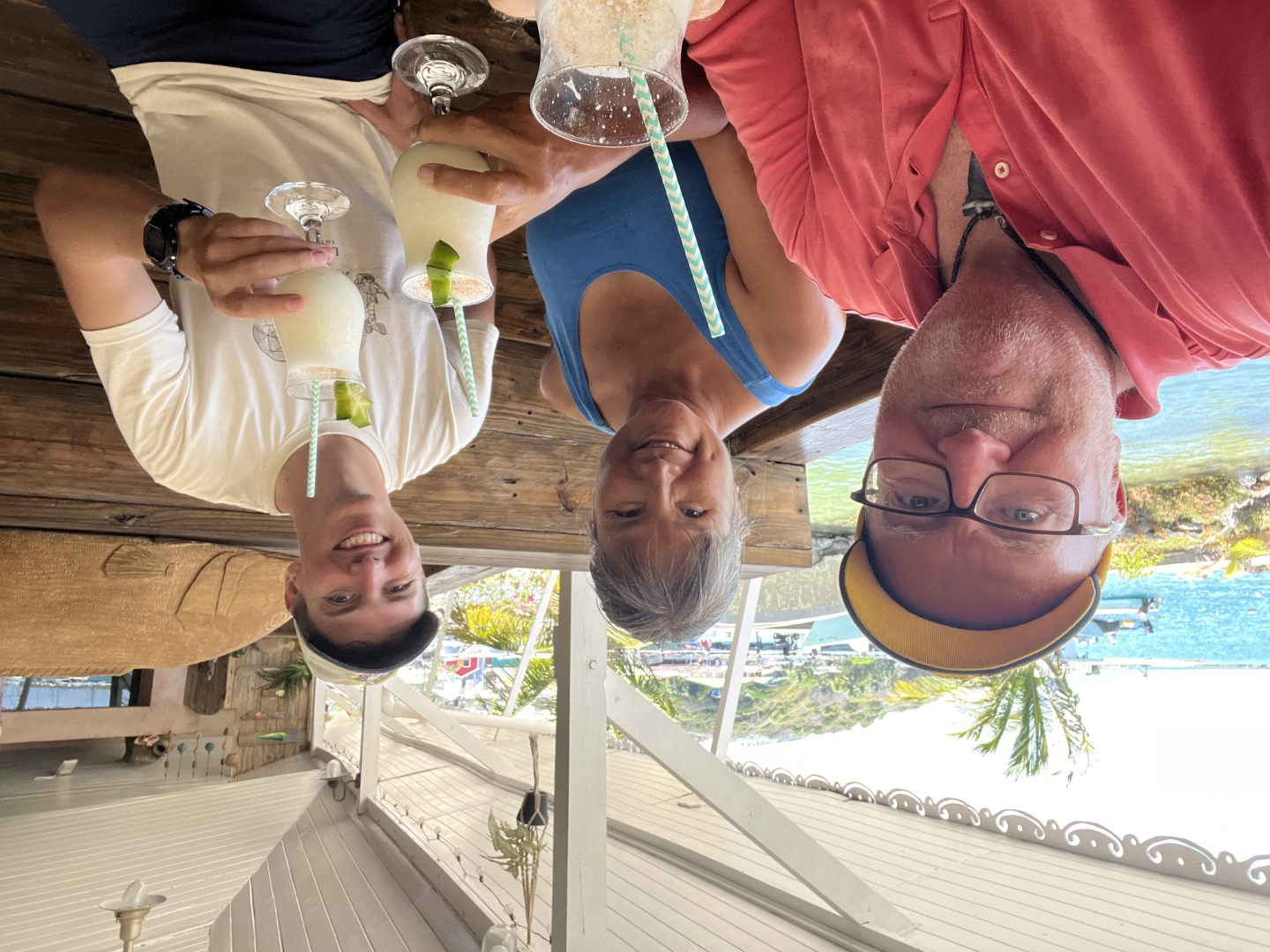 The next morning, we assessed the damage. Thanks to our friends on Renegade, Panterita, and Nizhoni, we were able to free the propeller and fix another problem at the top of our mast (topping lift jumped its sheave). We also examined the broken steel steering cable and formulated a plan to replace it with dyneema (a very strong polyethylene line). The following day, in between frequent rain squalls, we successfully accomplished the repair. We celebrated with a long swim in the beautiful warm bay. Tomorrow, we will explore the island!