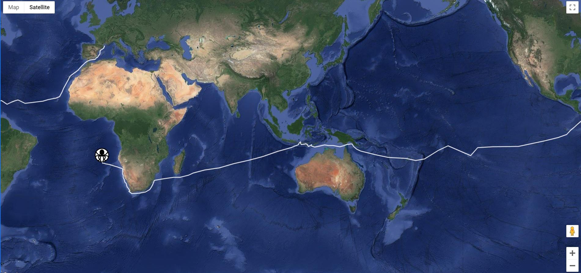An extraordinary thing happened late last night. We became circumnavigators. Simply stated, we have sailed across all 360 degrees of longitude from 9 degrees east in Corsica in the Mediterranean to 9 degrees east in the South Atlantic between Namibia and St. Helena. I have heard that more people have summited Mt. Everest than have performed a sailing circumnavigation. There are some rules for the club. You can’t simply stand at one of the poles and in a few steps cross all the lines of longitude. Technically, you must sail in a rough approximation of a great circle (a circle around the earth whose center includes the center of the earth) and you must cross the equator. Check, and check. Pretty cool. Next stop: St. Helena.