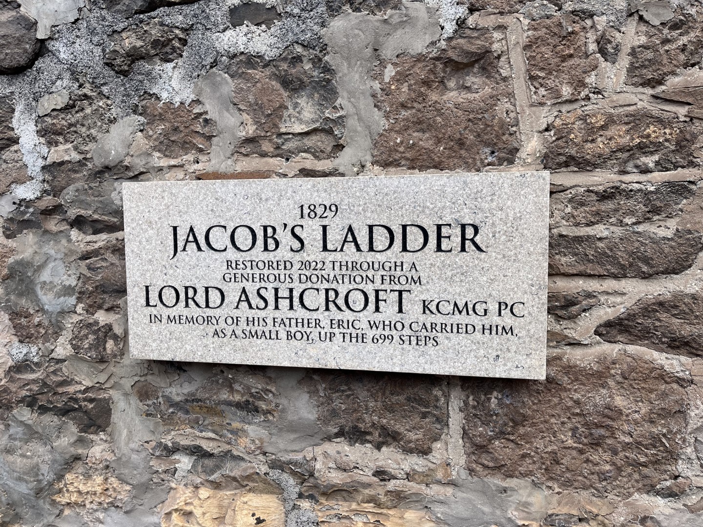 Jamestown is a small town full of pubs, shops, and restaurants. It is built in a rocky, steep-walled valley, and the most striking feature of the skyline is Jacob’s Ladder, a staircase of 699 steps leading to the firmament. I had read about these steps and was anxious to give them a try.