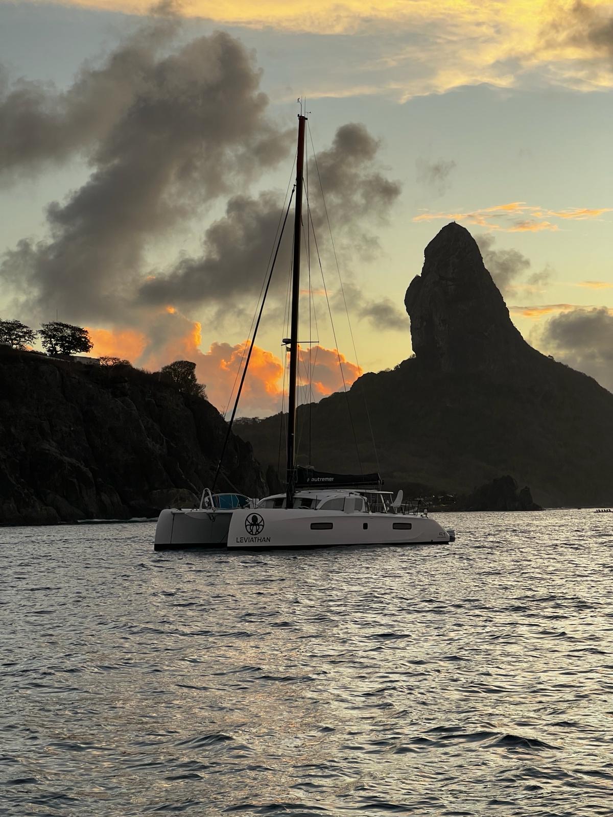 Along with the crew of GTFO, we completed formalities ashore easily with the help of the Port Captain. Next stop, you guessed it: the first available bar, where we enjoyed Brazil’s national cocktail - the caipirinha, made from sugar cane, lime juice, and a light Brazilian rum called cachaca. It is pretty great. Similar to a margarita. After a couple of rounds, we explored the island. Fernando is small, only around seven square miles. There is only one major road. No taxis were around, so we hiked uphill to the “downtown” area. We found a small shopping area and numerous hostels, boutique hotels, bars, and restaurants. A large stage in the town square had been erected and decorated for Carnival (unfortunately, we never attended the evening festivities, but we heard it was quite lively). We rode the bus back to the port and returned to Leviathan.