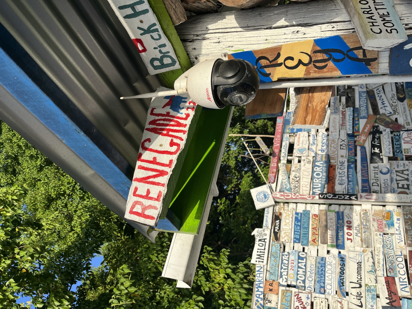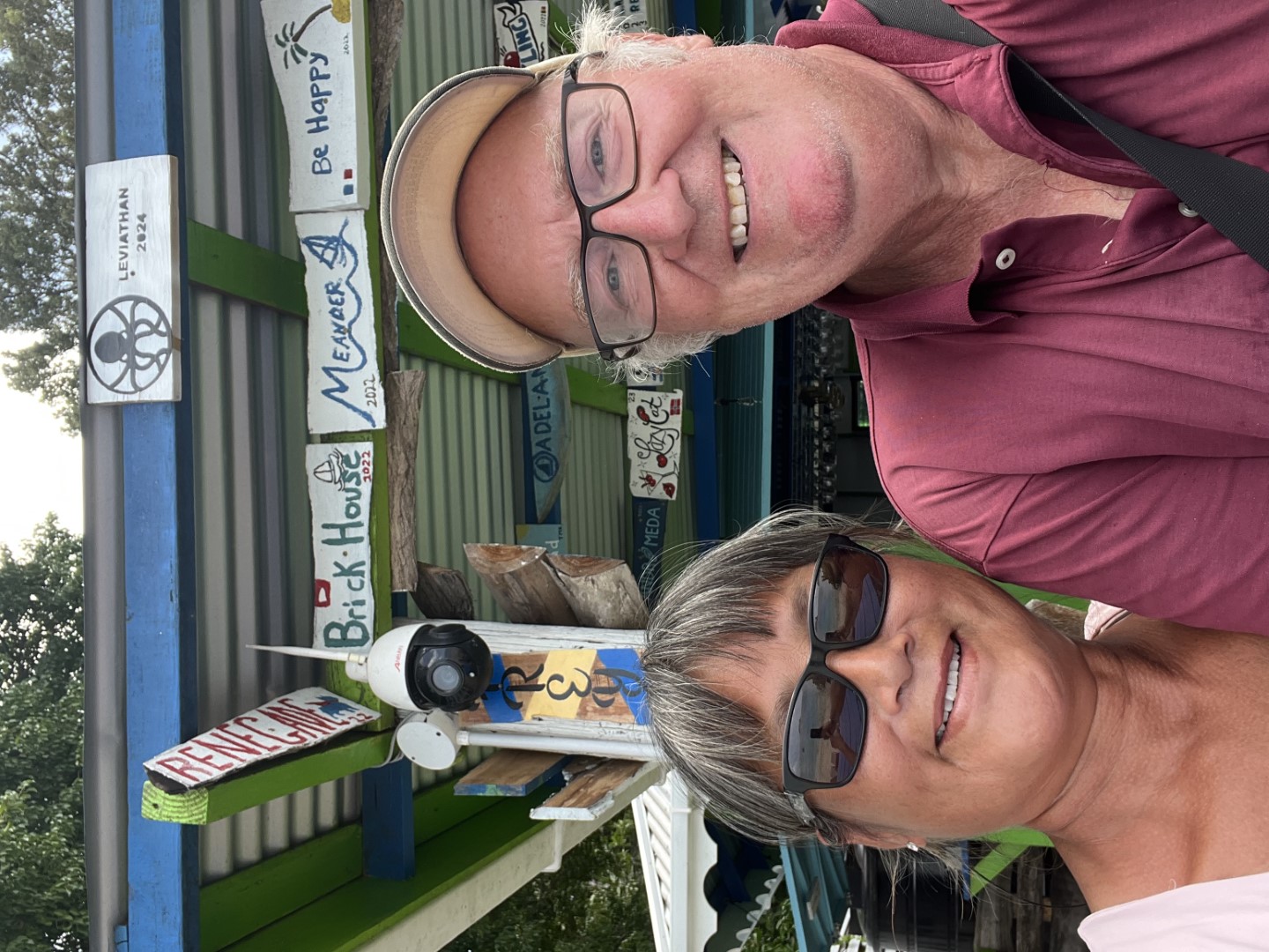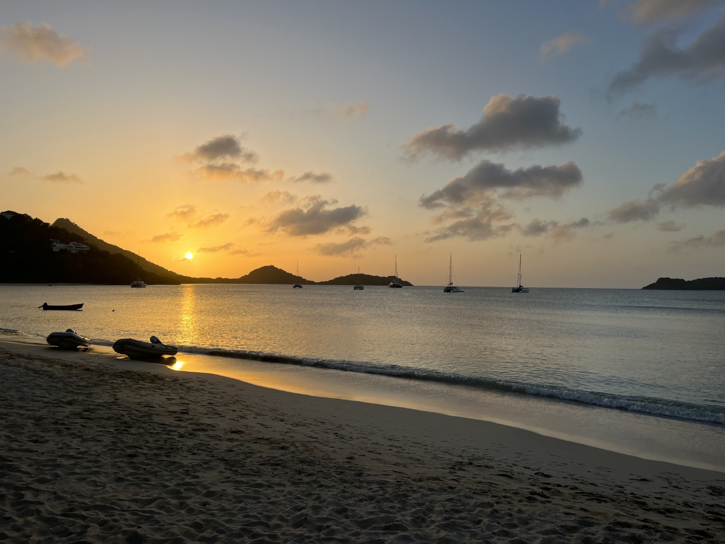 Carriacou is a small island 30 miles north of Grenada. It belongs to Grenada, and it has been our playground for the last ten days. The anchorages and moorings are idyllic. There is a beachfront restaurant across from Sandy Island which displays hand-painted signs from visiting yachts. We asked the owners if we could contribute, and we were given a wooden plank which we subsequently decorated. We are now immortal, as our humble sign has made it to the hall of fame next to Renegade.