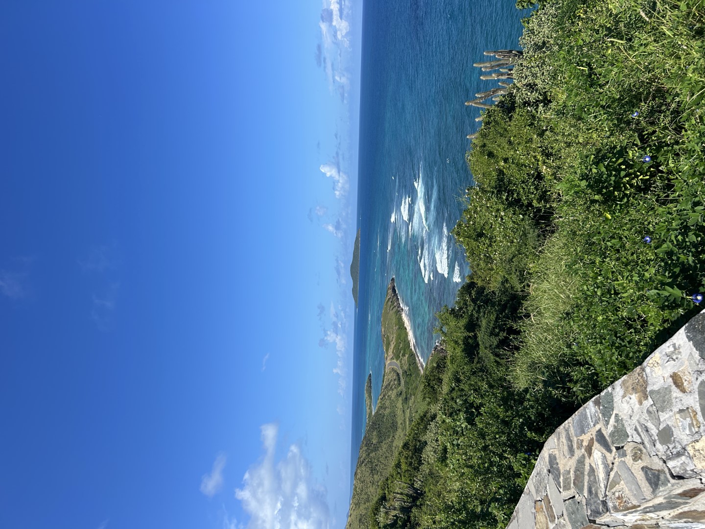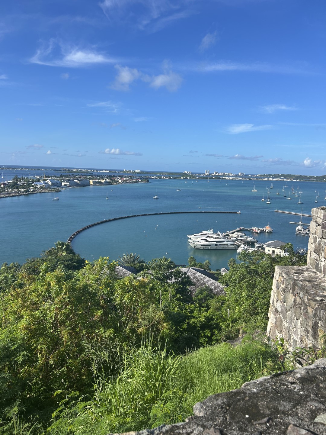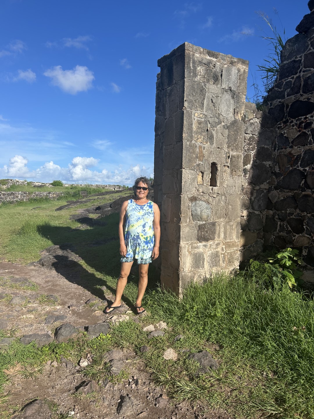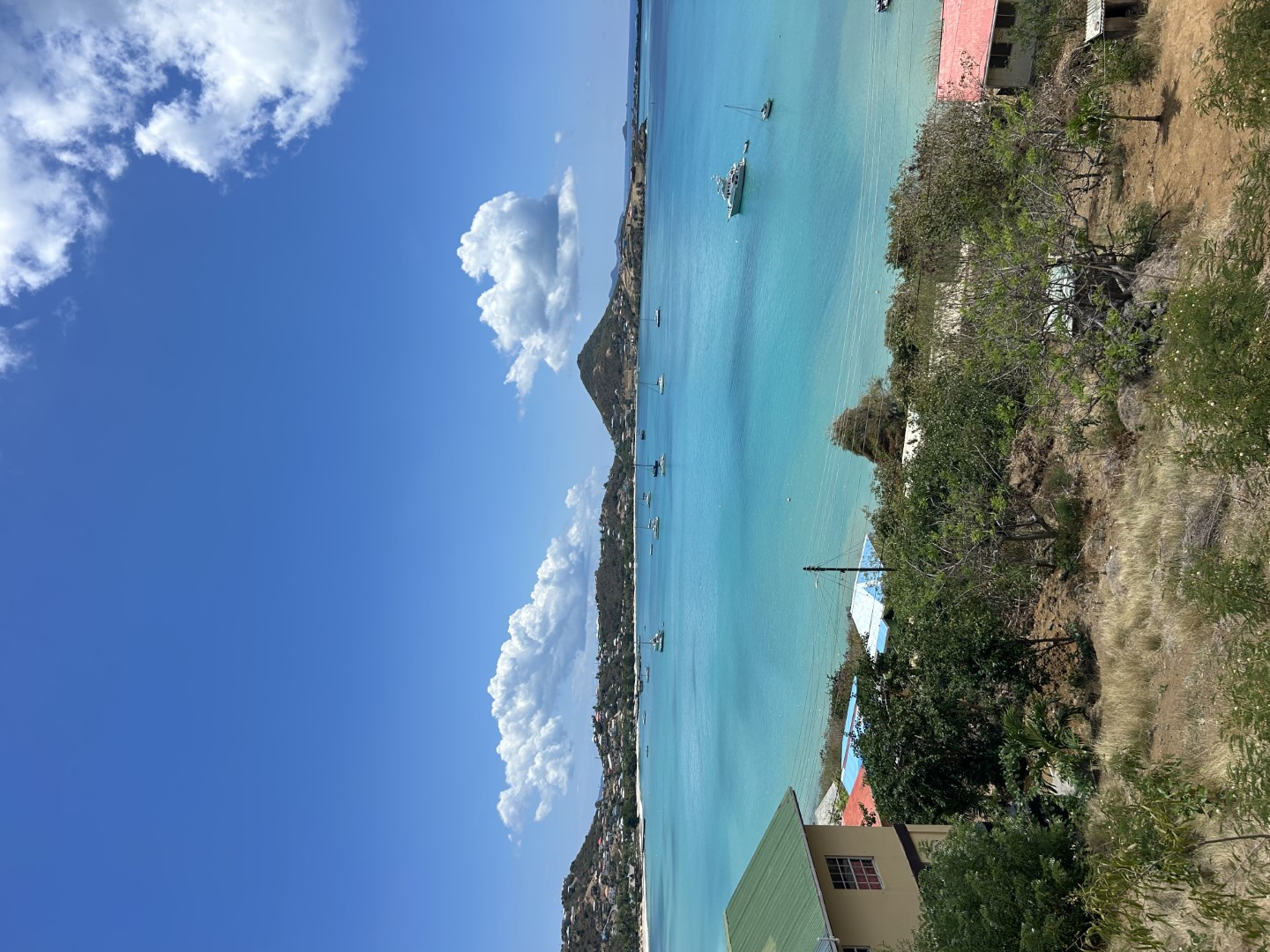 We left Guadeloupe and enjoyed a nice sail to St. Croix, the southernmost of the US Virgin Islands. Readers may recall that we spent some time there in the spring. We anchored at Frederiksted on the western end of the island. We were happy to see our friends Steve and Amy who have been living on the island and starting a plastic recycling business. They live on their catamaran Kaya. Cruise ships visit Frederiksted two or three times per week and stay for about 12 hours. As a result, there are numerous shopping and dining opportunities. One interesting fact about Frederiksted: the best diving on the island (and arguably in the entire Caribbean) is beneath the Frederiksted pier which extends nearly 500 meters offshore. The underwater residents include massive schools of tarpon, spotted eagle ray mantas, sea turtles, batfish, and innumerable species of colorful fish and coral. I was prepared to take many photos with my new GoPro, but the buttons do not seem to work at depth, and I will need to get an external housing from Amazon.