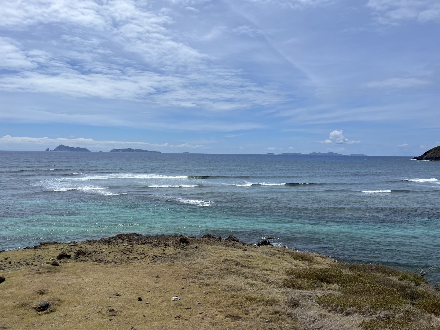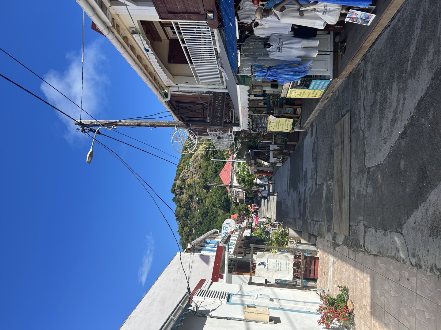 We spent our time here swimming in the crystal blue waters, snorkeling, and enjoying Friday pizza night and waffle Sunday on our buddy boat Nizhoni. Soon enough, we head south to Les Saintes, a trio of picturesque islands also belonging to Guadeloupe. We tie up to a mooring ball in the bay which is rated third most beautiful in the Caribbean. The local town is quaint and packed with shops, bakeries (France, duh), and restaurants. The island is packed with tourists who arrive by small cruise ship or plane. None of the tourists are from the US. I don’t know anyone who has vacationed in Guadeloupe, but I highly recommend it. There are no cars, so we get around by golf cart, touring the entire main island.