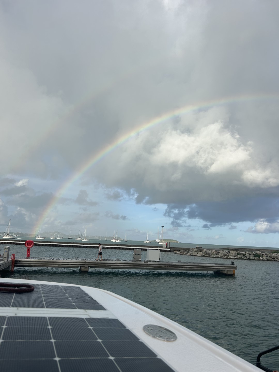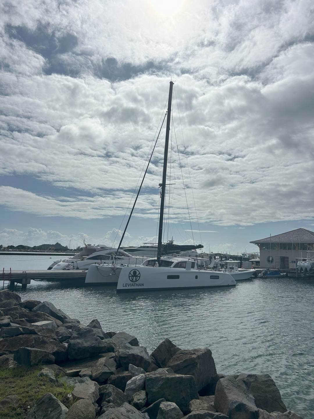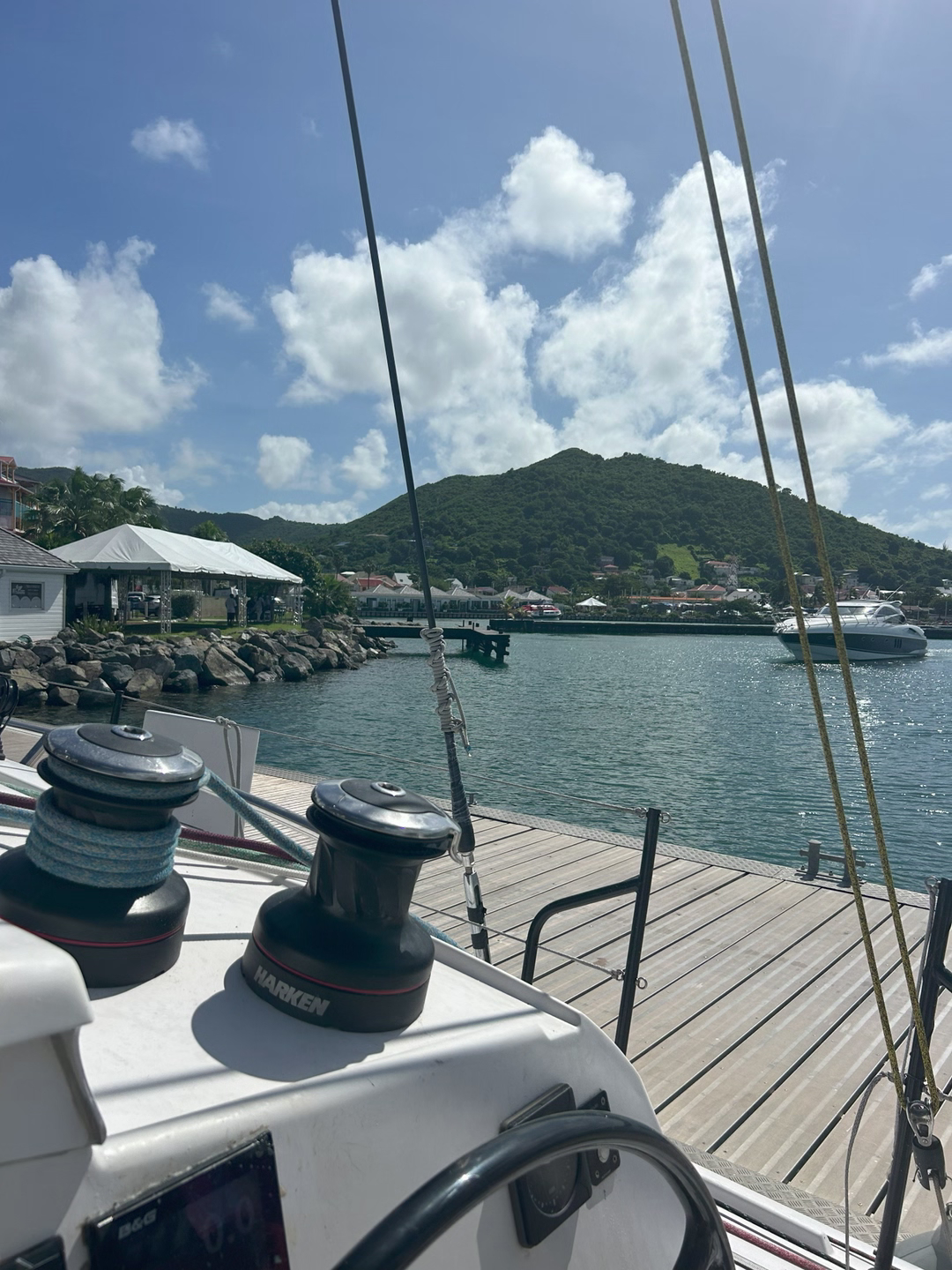 We covered the 1400 nautical miles in eight days and arrived at the Marina Fort Louis in Marigot. Entry formalities in French islands are usually quite easy, and we were not disappointed. Following a mandatory stop at the first available bar (FAB), we returned to Leviathan and collapsed. Ocean crossings are tiring, and it is nice to recover in paradise. Our only casualty of the trip was a tear in our spinnaker which will require professional attention. Our mainsail could also use some tender loving care. We contacted the local sailmaker and made arrangements for repairs. Tomorrow is Thanksgiving, and we are planning a feast. Hopefully we will be able to watch the Lions game. After decades of frustration, Detroit finally has a good football team. All is good.