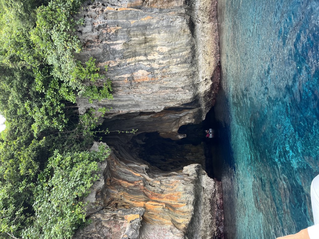The next morning, we completed some boat work and cleaning before heading out on an excursion. We picked up our boat neighbors on Matilda (Matt and Fiona) and dinghied to the nearby Swallow’s Cave, where we had a spectacular snorkel. After returning to Leviathan, we pulled up the anchor and moved to Vaka’eitu where we attended a pig roast on the beach presented by a local family who lives on the island.