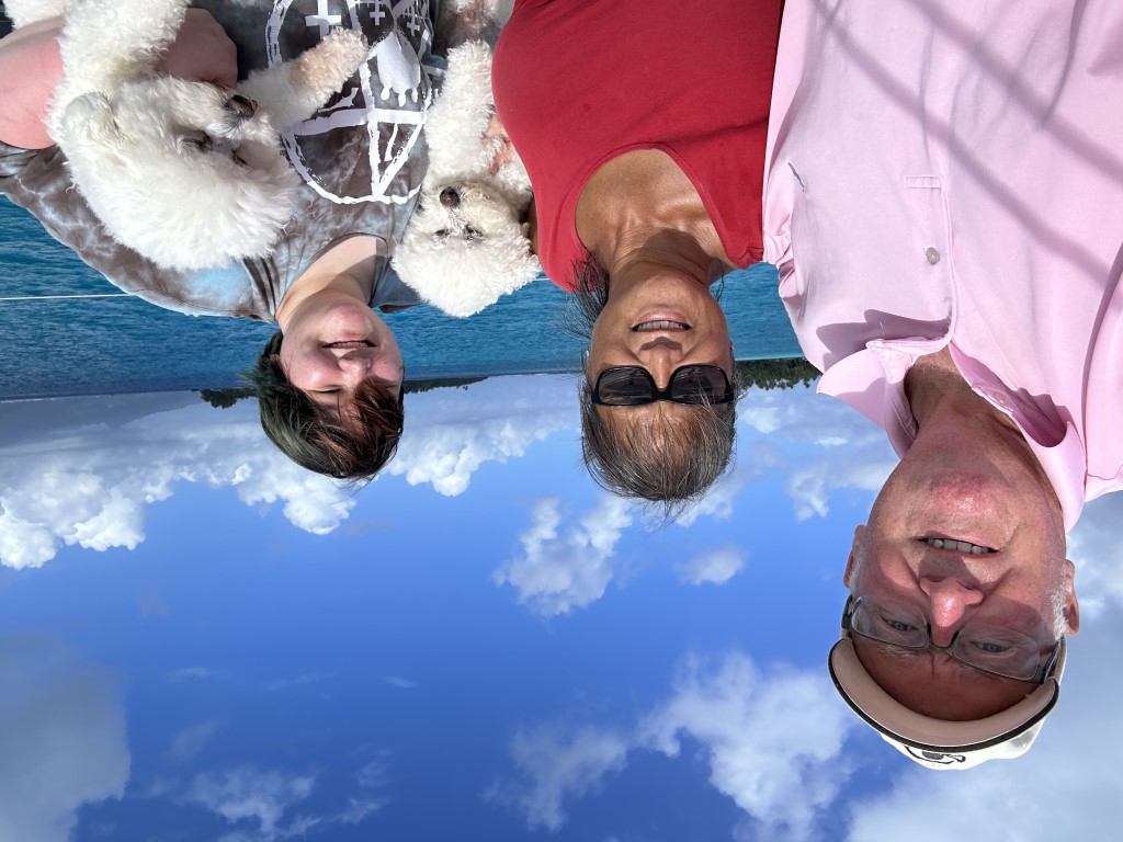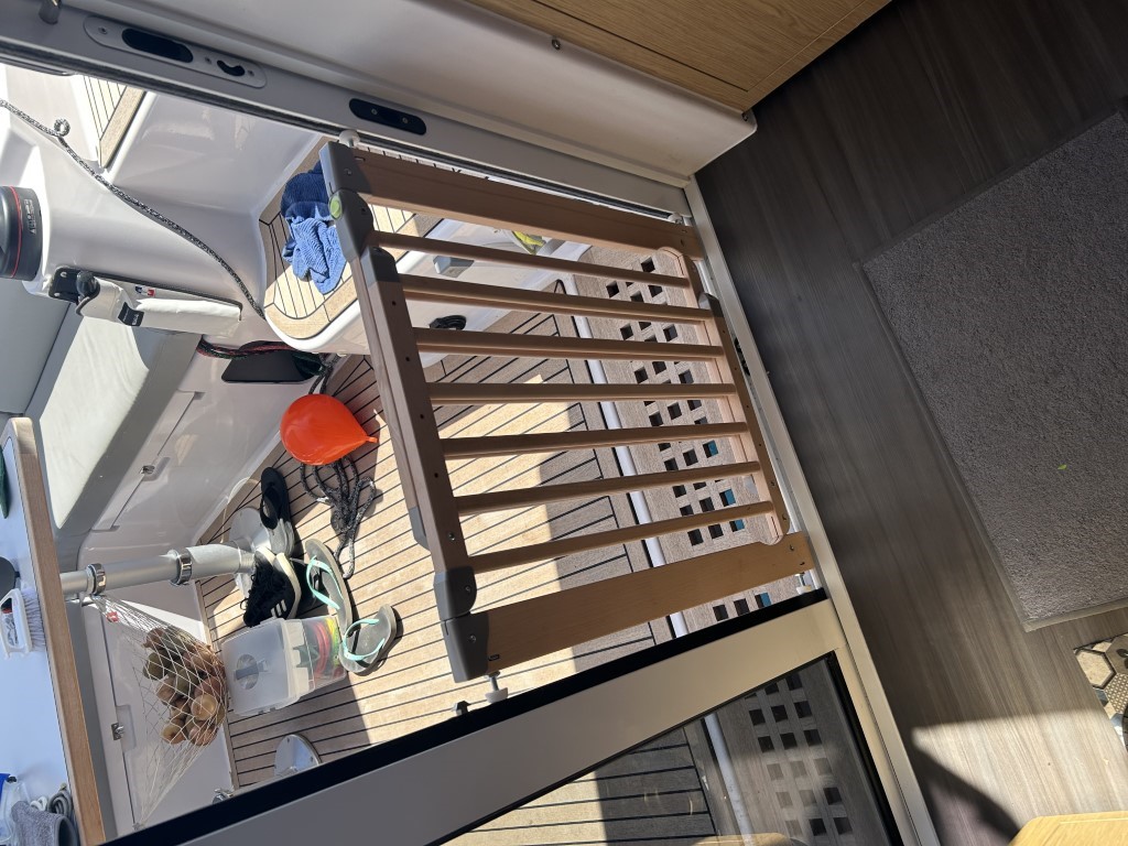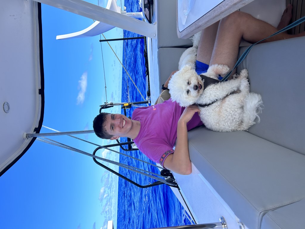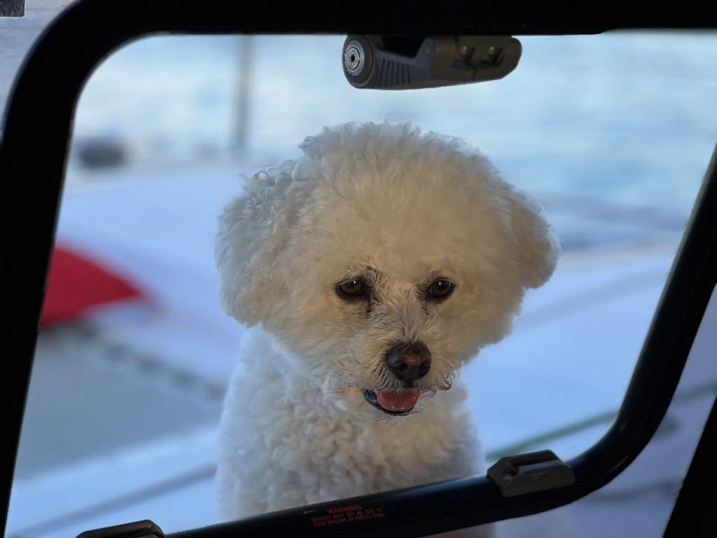 Our final task in Tahiti is to pick up Samantha who is arriving after just finishing her first year of college. Unfortunately, she missed her connecting flight in LA and had to stay at the LAX Hilton for a couple of days for the next flight to Tahiti. While we waited, we found a nice doggie gate for the boat. Eventually, Samantha arrived, and we brought her to Leviathan! The dogs were so excited to see her that they nearly jumped off the boat into the dinghy to greet her. We were excited too, of course!