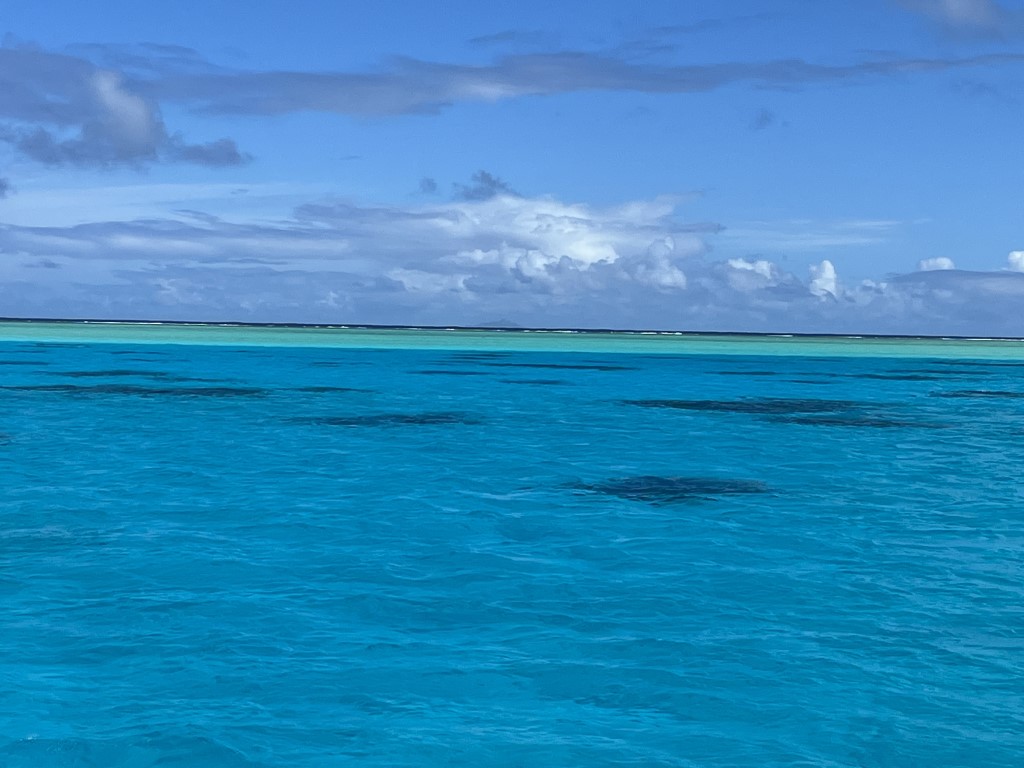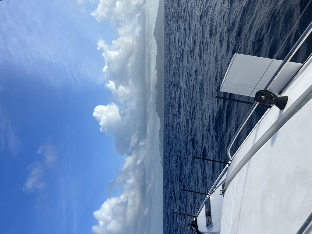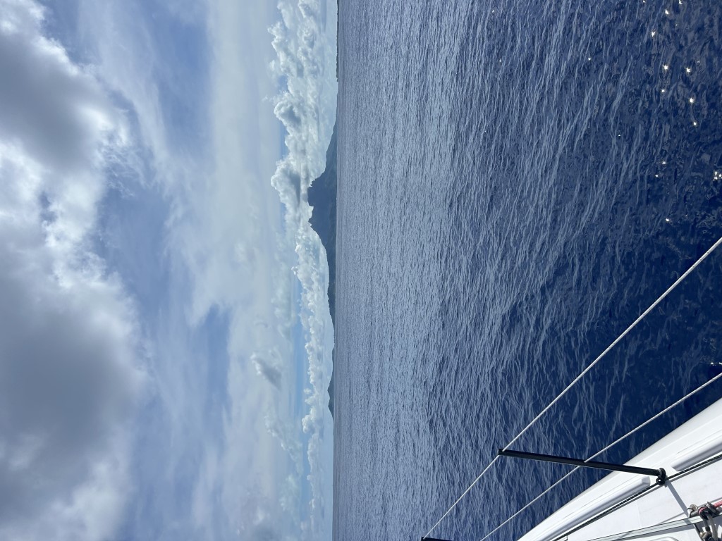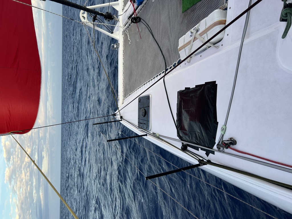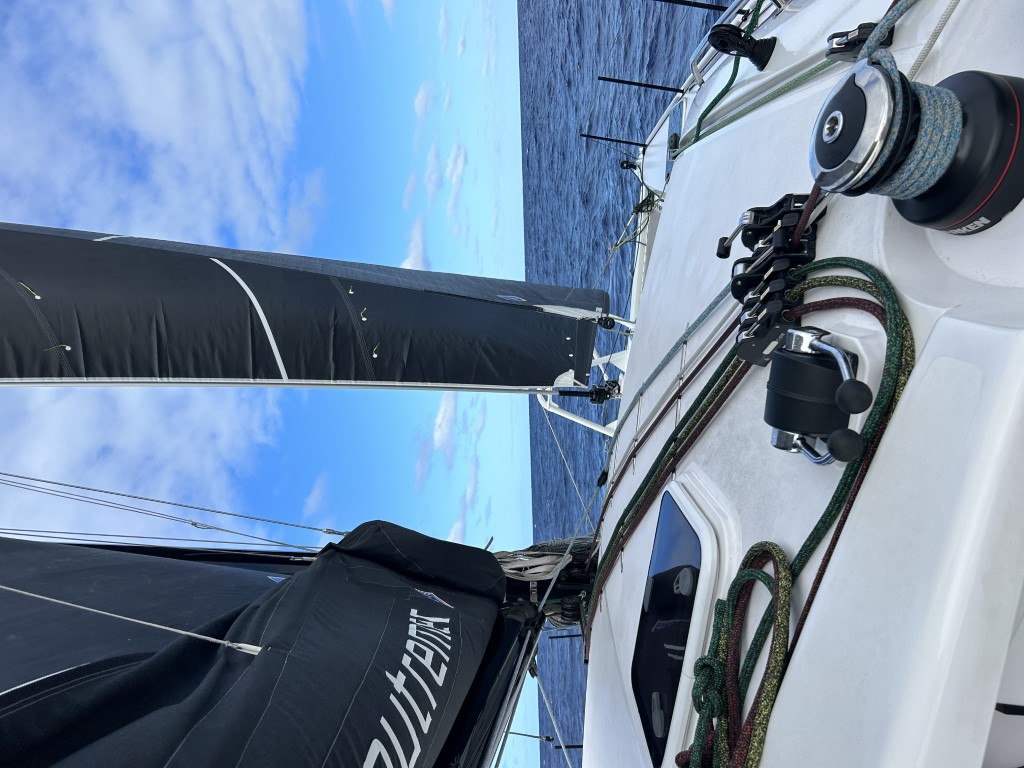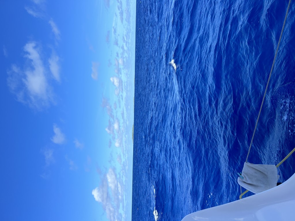 We left Bora Bora three days ago along with the rest of our rally fleet. Our destination of Suwarrow in the Cook Islands lies 690 miles to the west-northwest. We started with light winds and crossed the starting line with our gennaker. Unfortunately, in the process of rounding the first race make, we tore the gennaker on the mast spreader, prompting a sail change to the code zero (and a repair of the gennaker). Later in the afternoon, the winds died and we continued motor sailing for the next 24 hours. Ultimately, the winds returned and we enjoyed a lively downwind sail towards our destination.