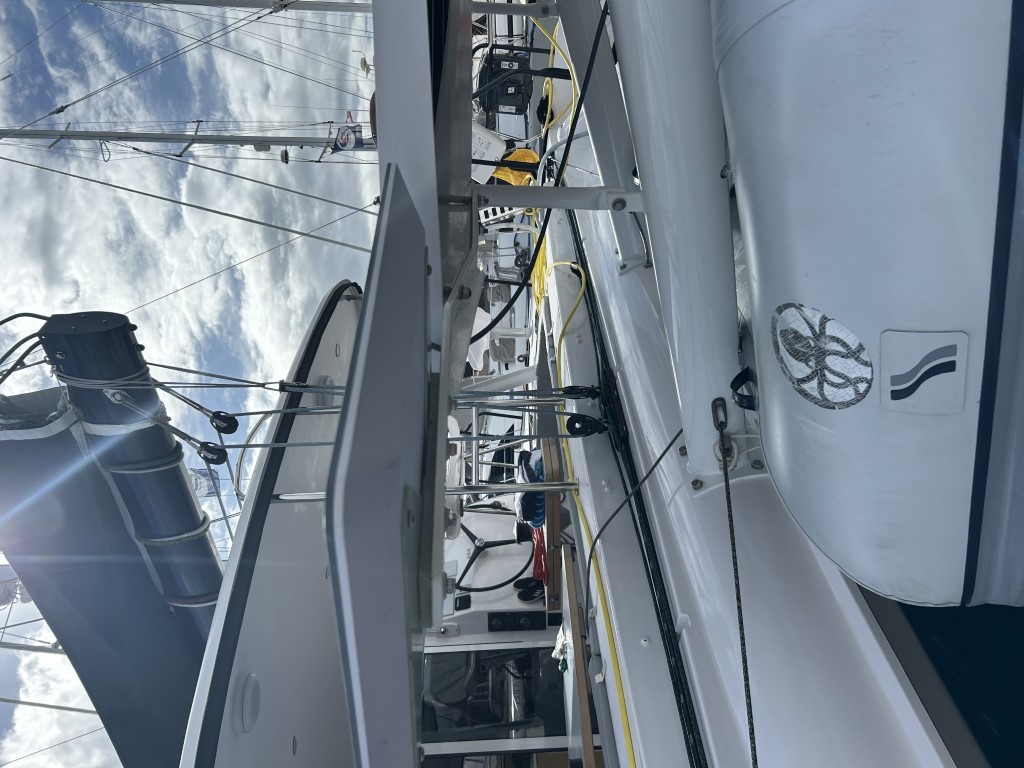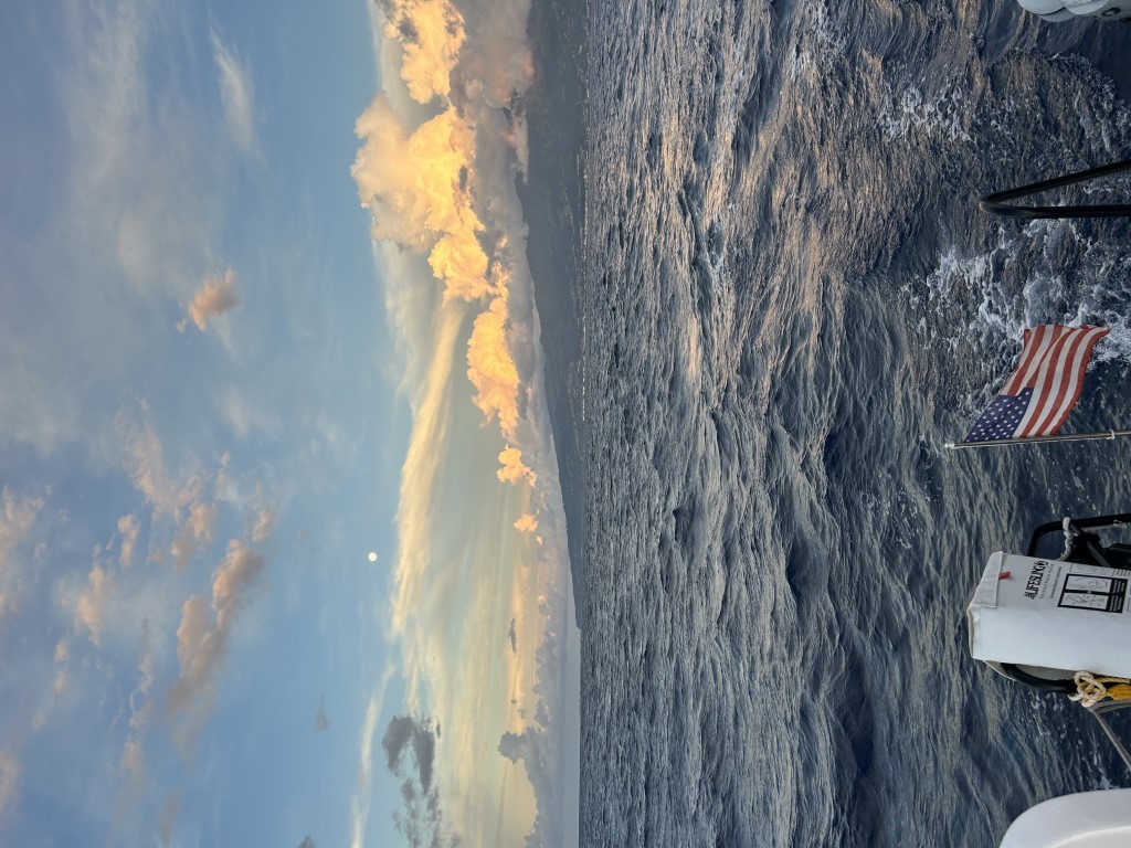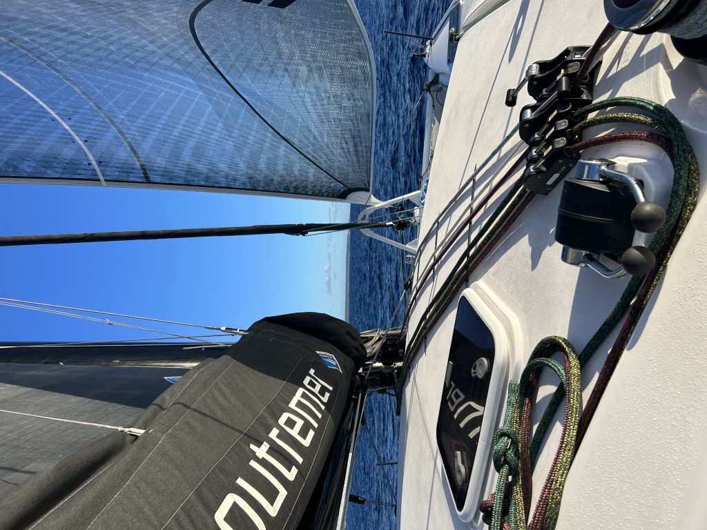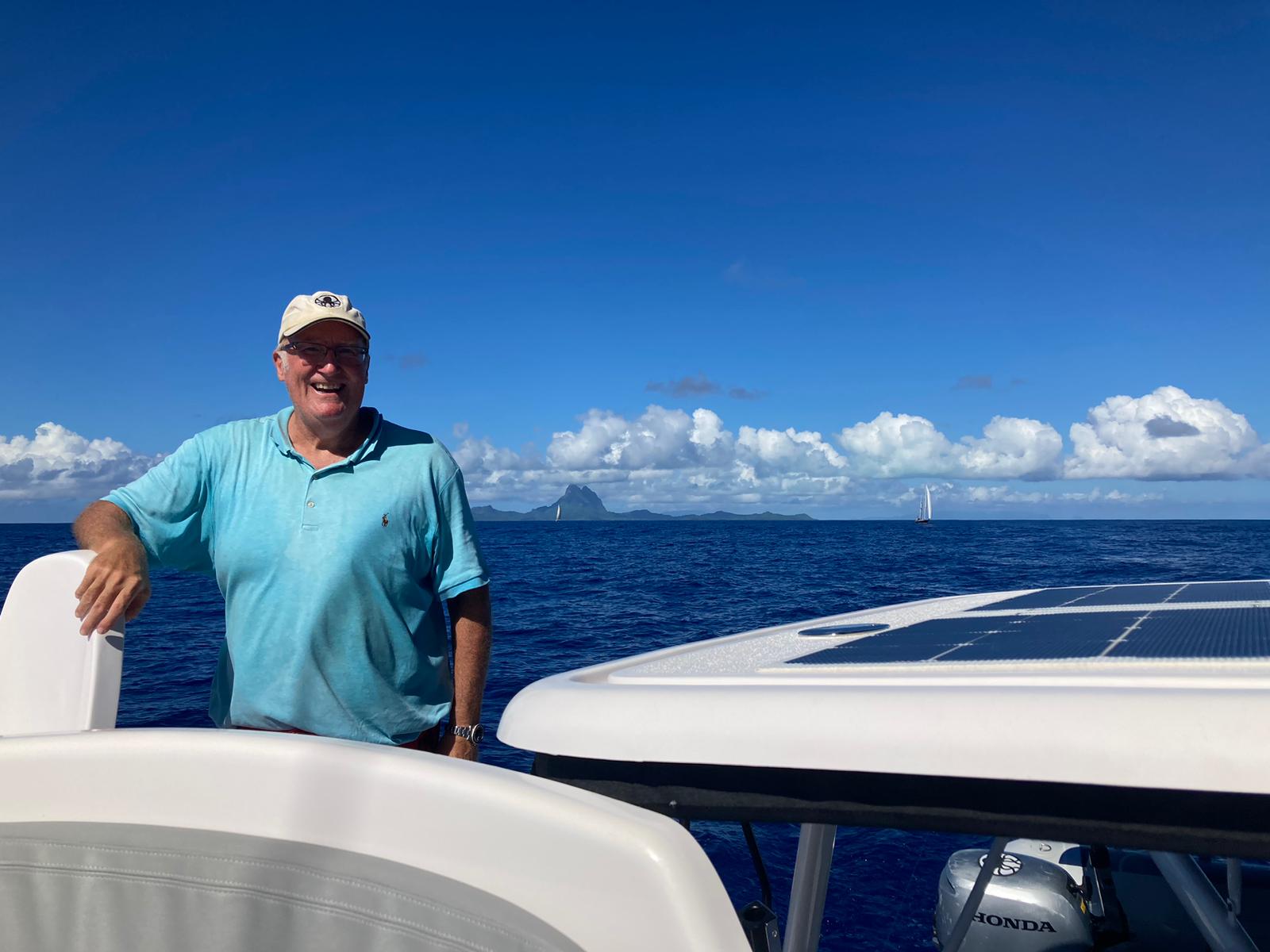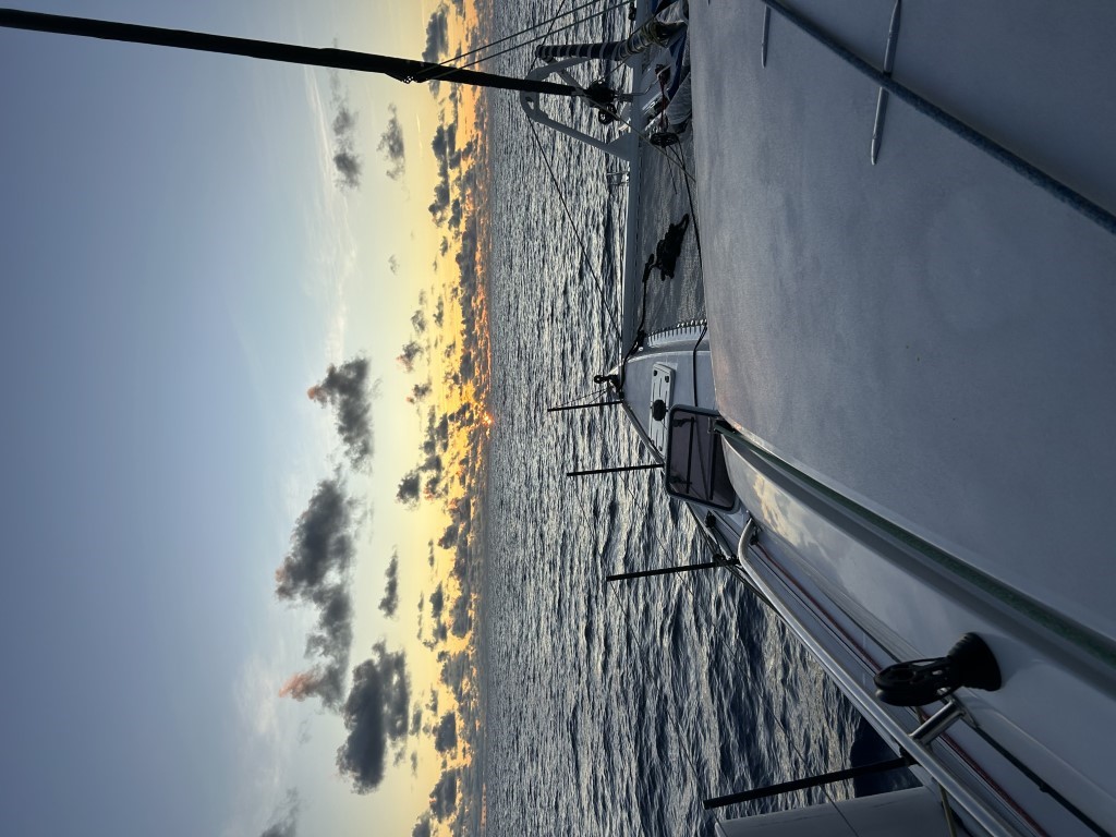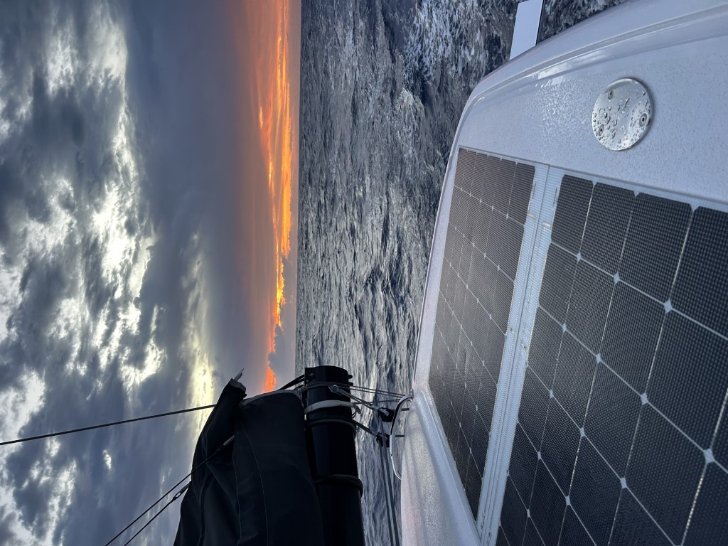 We left Bora Bora three days ago along with the rest of our rally fleet. Our destination of Suwarrow in the Cook Islands lies 690 miles to the west-northwest. We started with light winds and crossed the starting line with our gennaker. Unfortunately, in the process of rounding the first race make, we tore the gennaker on the mast spreader, prompting a sail change to the code zero (and a repair of the gennaker). Later in the afternoon, the winds died and we continued motor sailing for the next 24 hours. Ultimately, the winds returned and we enjoyed a lively downwind sail towards our destination.