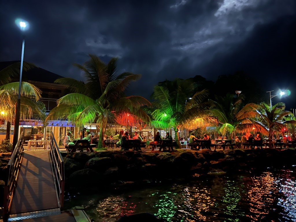 After a short rest, we made one last dinghy trip to downtown Papeete to show Samantha the famous Papeete market. Once we returned to the boat, we made preparations for an overnight sail to the nearby island of Huahine, about 100 miles away. Just before dusk, we left Tahiti behind and enjoyed a beautiful sail. The winds were strong, so we needed to control our speed to allow us to arrive with daylight. As a result, we made the downwind journey under jib alone.