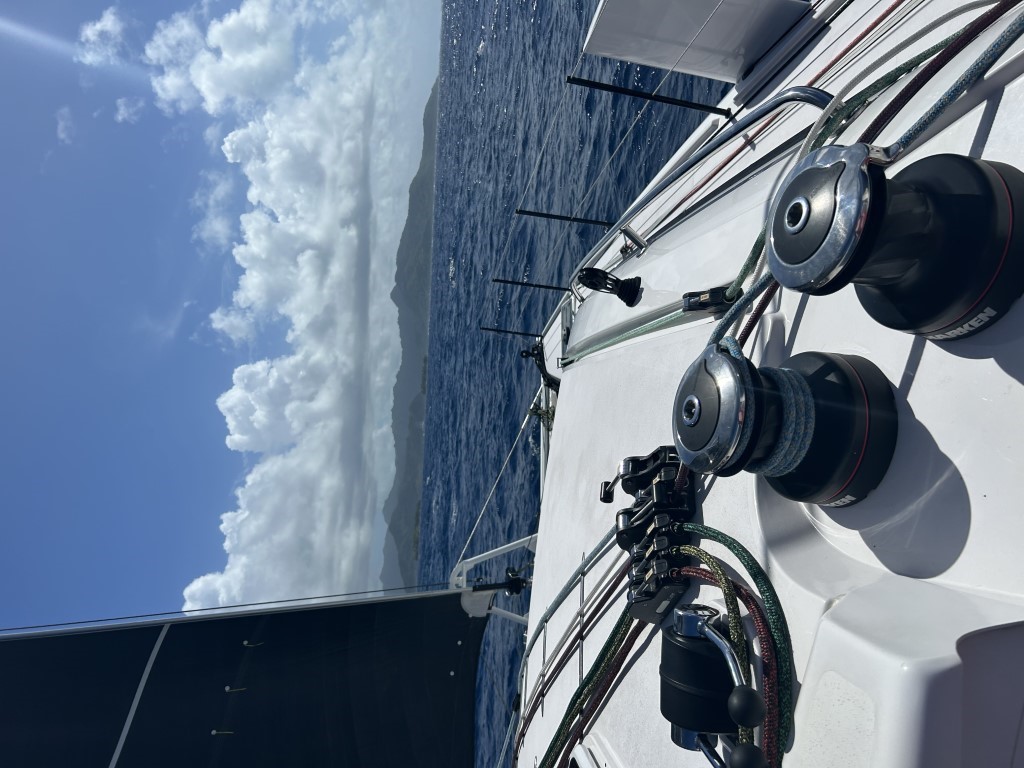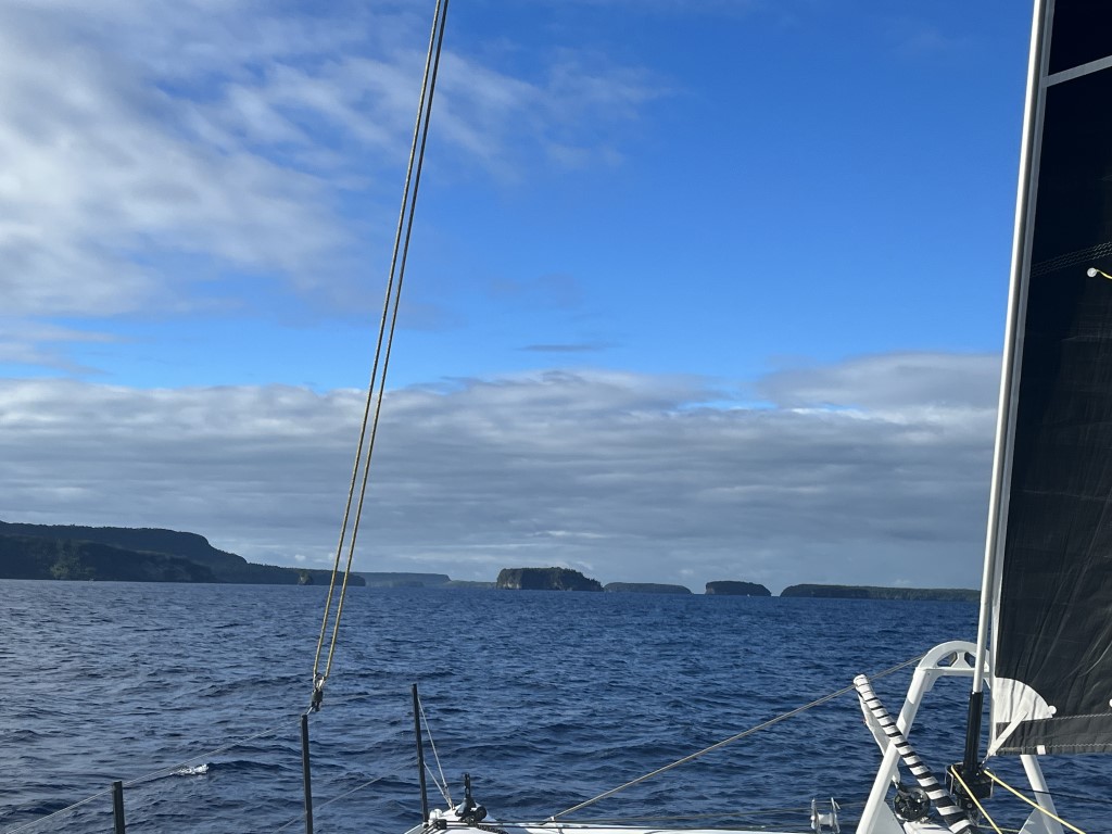 Long story short, we had an exciting crossing from Niue to Tonga. As usual, we prayed to the wind gods for more wind. Unfortunately, we were not specific with our request. As we were sailing along at modest speeds with our full main and code zero headsail, we noticed an ominous grouping of clouds ahead. We wisely took down the headsail in favor of the much smaller jib. Within minutes, we were subjected to 35-40 knot squall winds and driving rain which reduced our visibility to 50 meters. We ran downwind to ease the apparent wind and wait for the squall to subside, but the winds persisted. We made the decision to turn into the wind to doubly reef the mainsail and partially furl the jib. Despite the extreme circumstances, we performed the maneuvers flawlessly, almost like we knew what we were doing! Eventually the winds subsided to the 20-25 knot range. We let out one reef in the main (leaving one in place) and unfurled the jib completely. Leviathan flew for the remainder of the evening with speeds up to 16 knots (pretty fast for a sailboat). As dawn broke, we passed the date line, lost a day (but didn’t feel any older), and crossed the finish for this leg to Tonga.