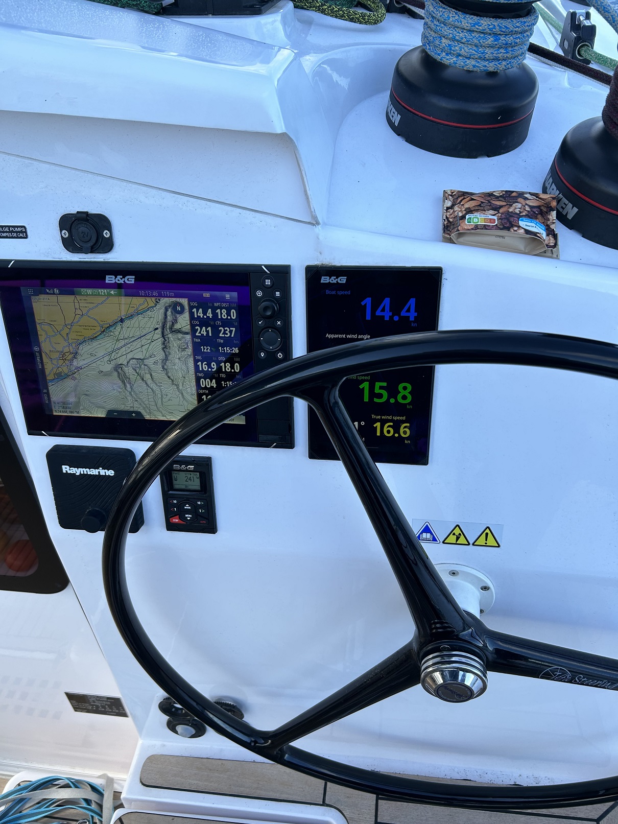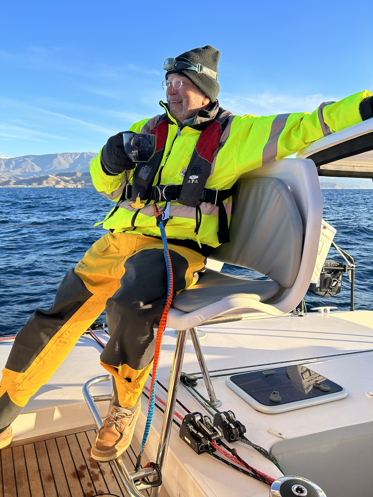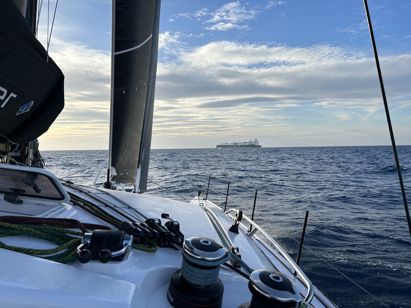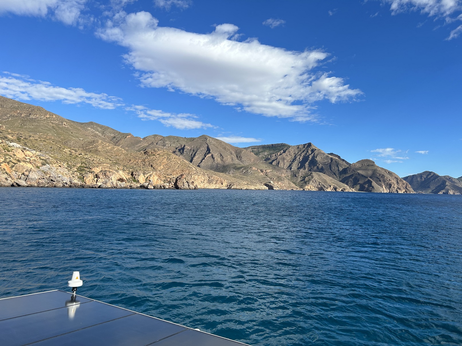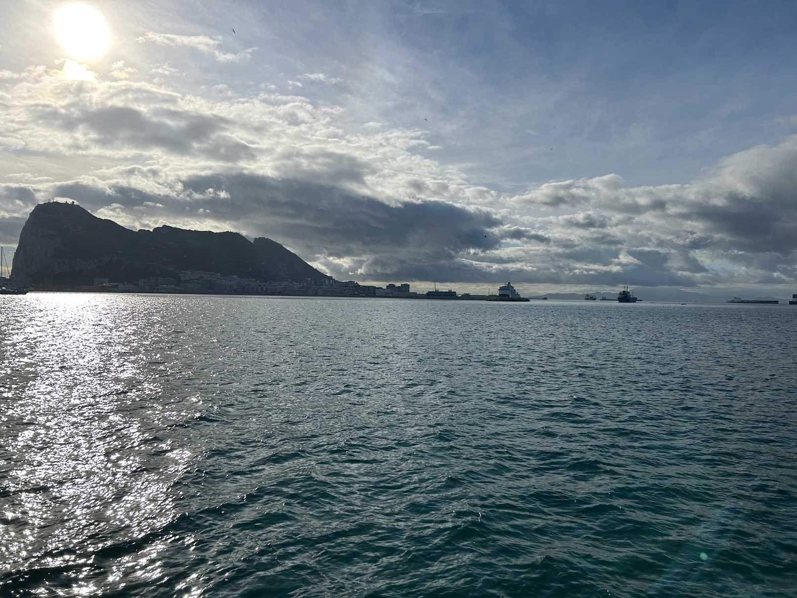 We left Almeria at midnight after saying goodbye to Vicky and Diane who will be flying out. We will miss them! We will see Diane again in Martinique. We took advantage of a narrow window to race to Gibraltar before the onset of the predicted heavy westerly winds. We expected a 24-hour run, and things were going smoothly until we reached the bay off the coast of Malaga around the halfway point. We came face-to-face with the Terral, a warm, heavy katabatic wind from the northwest that follows the river valley to the sea. We adjusted the sails and blast-reached across the bay. The winds soon normalized and we continued our forward progress.