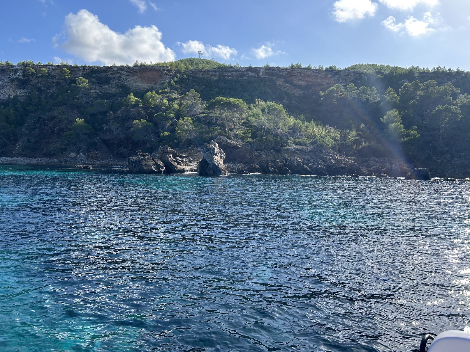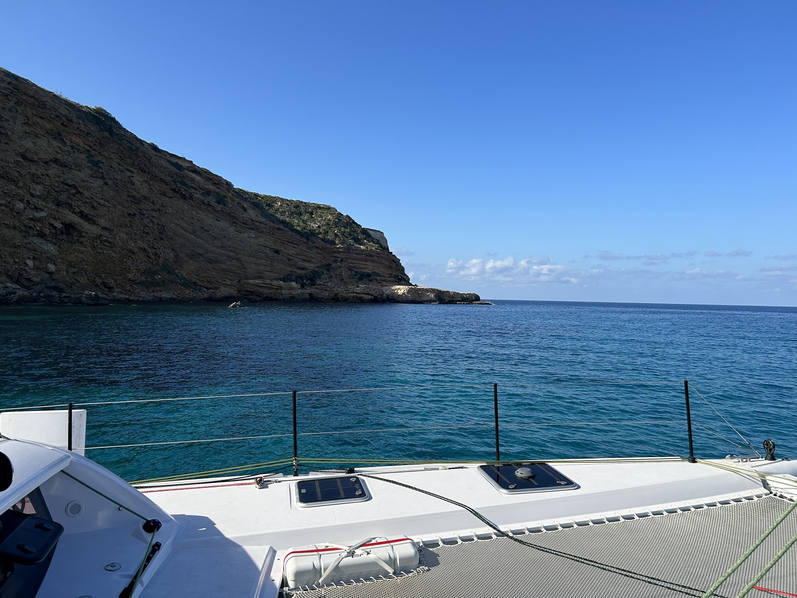 The Balearic Islands are a Spanish archipelago in the western Mediterranean. The major islands are named Menorca, Mallorca, and Ibiza. Our destination in the Balearics was Ibiza, the westernmost of the group. Ibiza is famous for being a party island with hordes of hard-drinking and dancing visitors. Apparently, the government doesn’t like this reputation and is actively lobbying to make the island more family-friendly. Kind of like when Las Vegas tried to do the same thing. The reality of Ibiza is that it is another stunningly beautiful jewel in the Mediterranean. We were not in a partying mood, so we anchored in a remote and beautiful cove that could have been an on-location set from a James Bond movie with a castle, a villa with a meticulously groomed property, and water access via brick-enclosed boat garages.