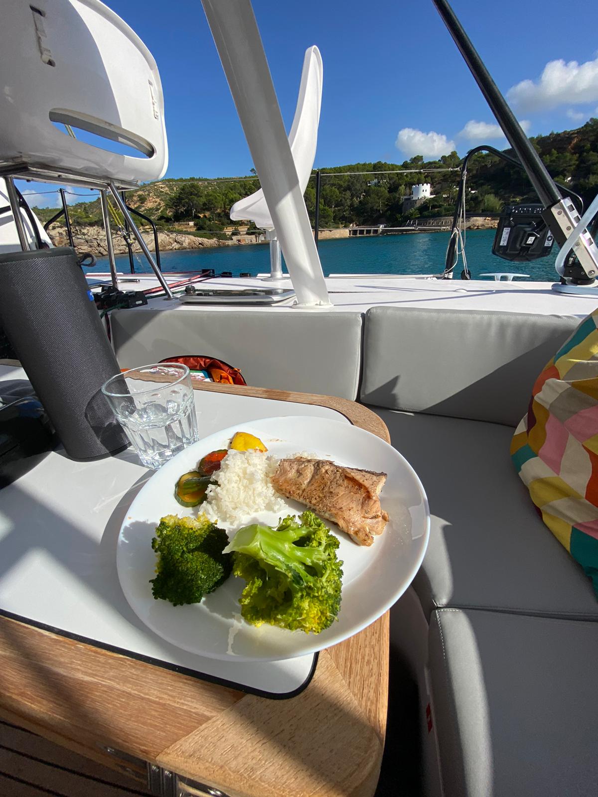 Sailing is relatively straightforward with only a few simple rules: (1) you can’t sail directly into the wind; (2) if the wind is light, you need more sail area (put up a bigger sail); and (3) if the wind is heavy, you need less sail area (change to smaller sails or reduce the size of a sail by “reefing”). I guess there is one more rule: (4) the weather forecast is always wrong. We were expecting a lively 160-mile upwind sail back to the mainland from Ibiza. Normally this should take about a day. Unfortunately, we were faced with heavy winds right on our nose the whole way with jaw breaking waves which made forward progress excruciating. We finally made it to Cartagena, Spain after two grueling days. Luckily, our intrepid crew all have short memories, and we swiftly changed gears to enjoy the current anchorage. A short dinghy ride to the nearby beach afforded hiking in a national park and beachcombing opportunities. Wine, music, and spaghetti with meatballs further soothed our wounds. We are ready for another challenge!