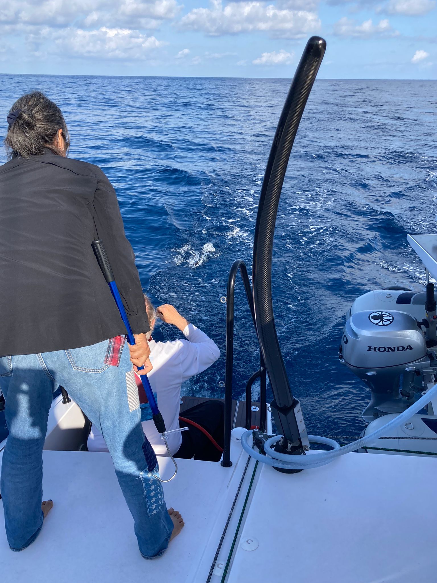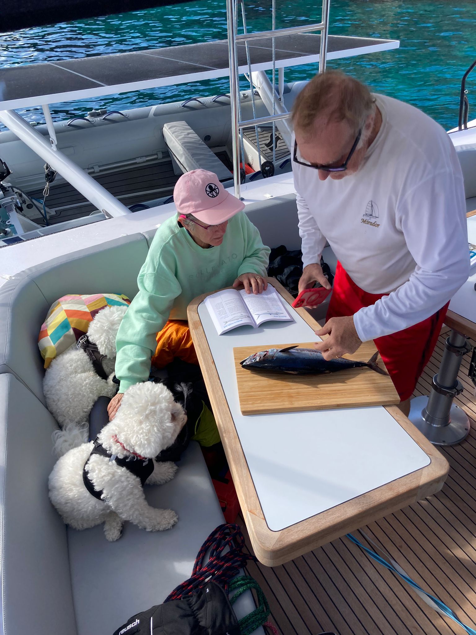 We had some excitement just before we anchored. We caught our first fish, a tuna! It was not very big, probably only eight pounds or so, but we kissed it, cleaned it, and ate it for lunch!