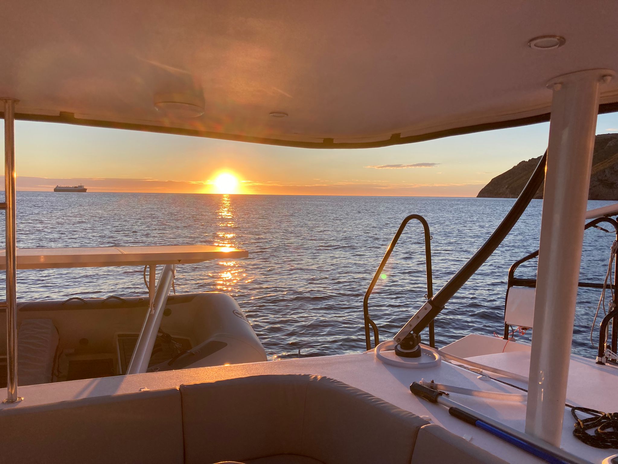 As the hours ticked by on the voyage, night turned to day and back to night again as we crept closer to Gibraltar. As we admired a beautiful sunset, we were able to make out a block-like point of land in the distance westward. And, remarkably, there seemed to be land vaguely jutting out from the south (understand that in our Mediterranean adventure so far, we have never seen land jutting out from the south). After putting on our thinking caps, we realized that we were seeing the Rock of Gibraltar to the north and the continent of Africa to the south of the setting sun. We were elated by this revelation: our destination is in sight! I will never forget the giddiness I experienced as we approached the Rock, dodging huge tankers (and nearly getting run over by one), rounding the Rock, and entering the Bay of Gibraltar, where we continued to dodge tankers until we reached our anchorage. Once settled and high-fives exchanged, we felt the need for a drink, but we found that we were out of alcohol! So, we went to sleep instead. The next morning, we entered the nearby Alcaidesa Marina, fueled up with diesel, and secured our boat to our slip just as the wicked predicted heavy winds began. We were settled just in the nick of time. Another catamaran then docked next to us, having just arrived in Gibraltar five hours after us. They described a horror show of heavy winds in their approach, which on one occasion spun their 42-foot vessel 360 degrees atop a rogue wave! We are happy to have avoided that!