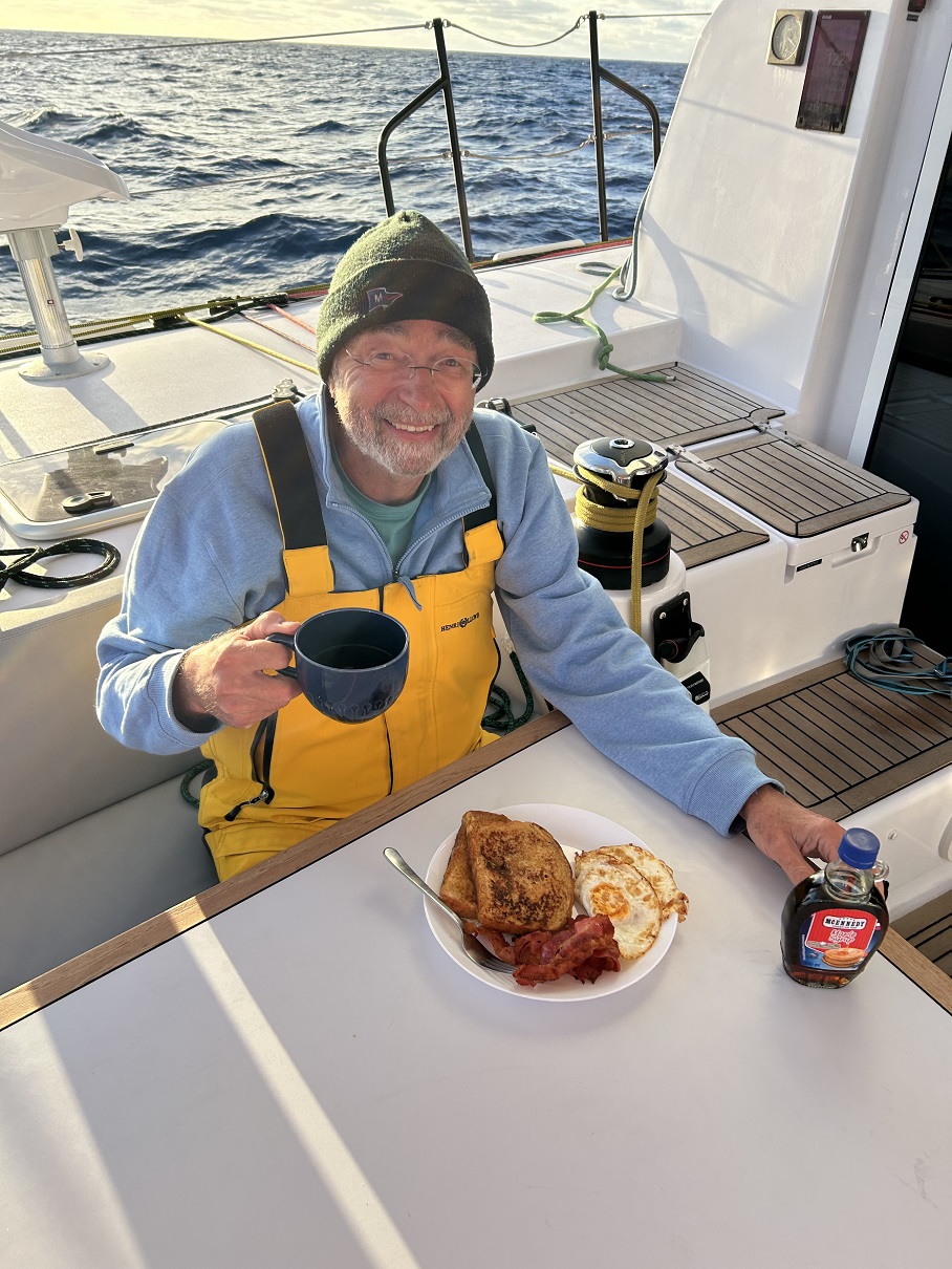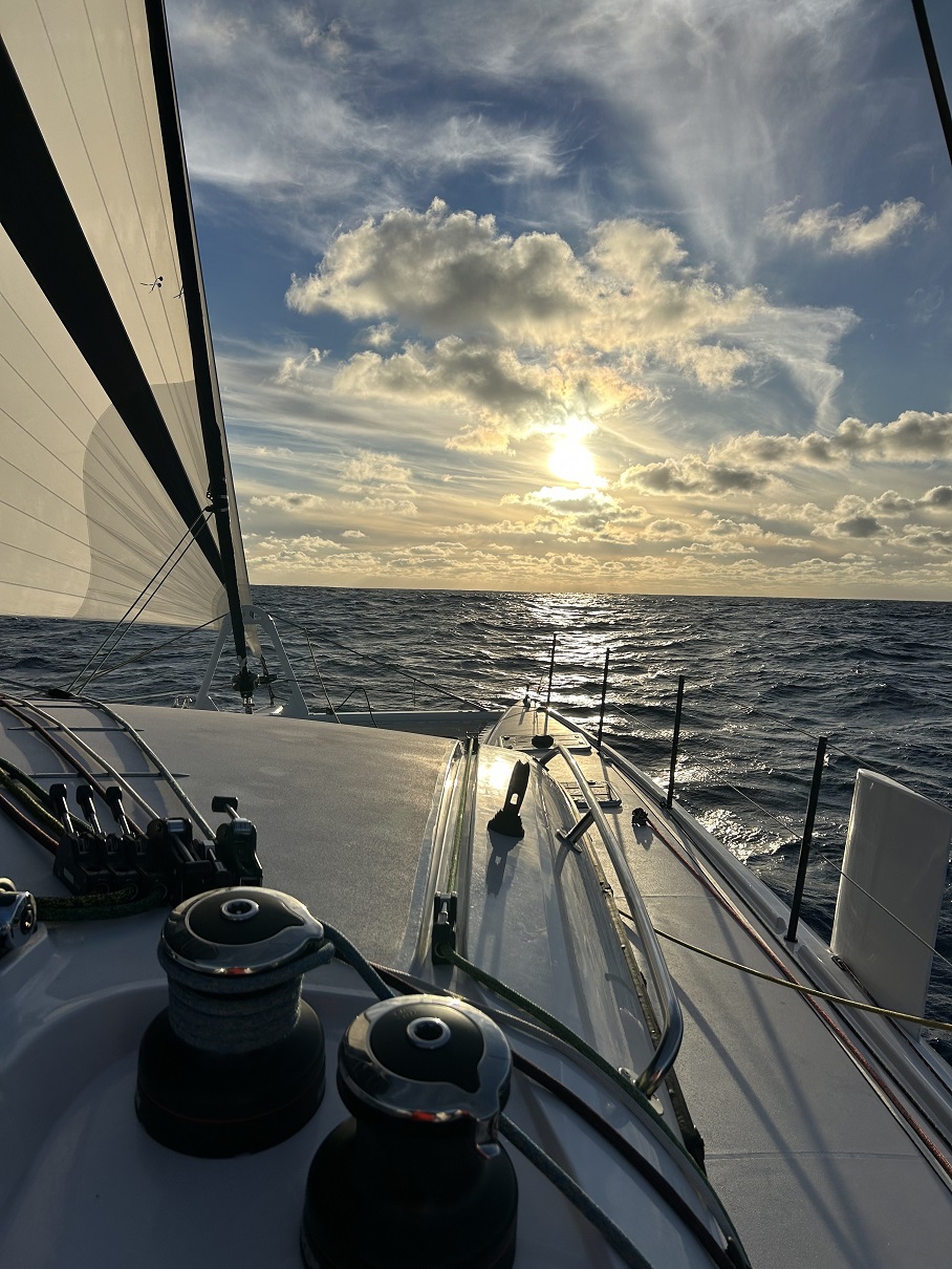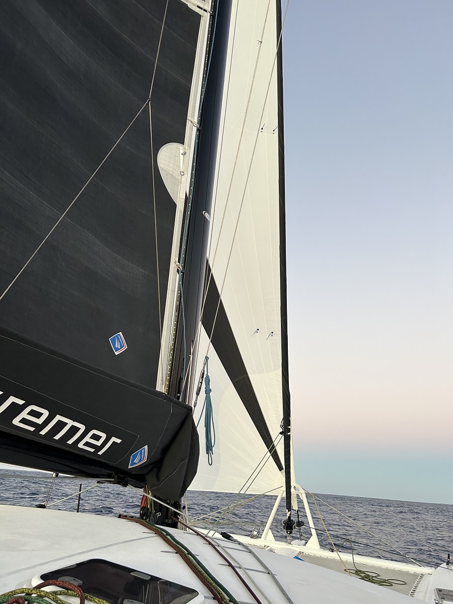 Let me give you some examples from our recently completed passage. We left Gibraltar at zero-dark-thirty and exited the harbor zigging and zagging around tankers both anchored and moving. We then spent the next 10 hours fighting a five-knot current to exit the Straights of Gibraltar and enter the Atlantic Ocean. So far, solid Type 2 fun: difficult, stressful, cold, but very satisfying. The next two days were solid Type 1 fun with excellent downwind sailing conditions heading south along the coast of Morocco. We watched the miles slide by and actually got a little bit overconfident. The weather reports were favorable, and we were flying! That was when Mother Nature smacked us in the mouth with heavy winds and gigantic following seas. Of course, this happened at night. We took down the gennaker and reefed the jib but left the full main up because we were afraid to reduce it since that would have required us to turn the boat around temporarily and plunge headfirst into the massive waves to perform the maneuver (this was a bad decision; we should have just done it, but fatigue leads to bad decision-making). This left the boat overpowered for the conditions, and we suffered through the entire night. The noise of the fiberglass hull repeatedly slamming into wave after wave was deafening and discouraging; why are we doing this? Once dawn finally arose, we felt a boost of encouragement which allowed clearer thinking. As a result, we reefed the main without difficulty and immediately converted the Type 3 fun to Type 1. With the boat finally under control, we had a blast jibing to the finish line. Once again, it pays to have a short memory! Arrival in the Canaries was a huge accomplishment with a short-handed crew, and we will always remember it!