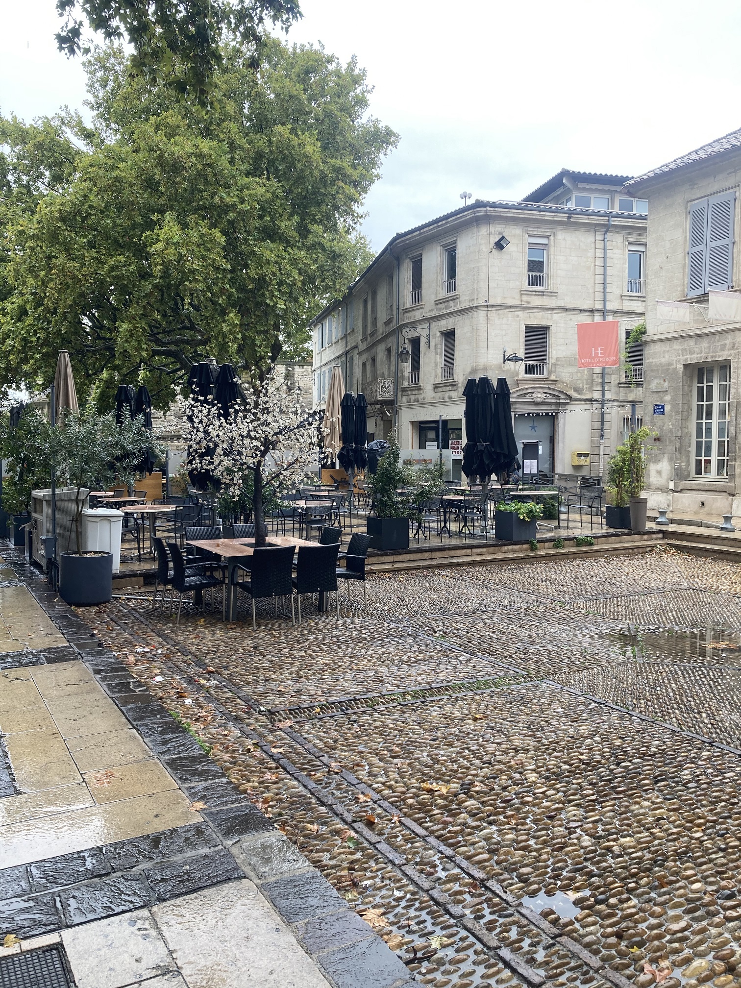 We stayed in a very nice dog-friendly hotel for a couple of days until our Airbnb was available and did some shopping and touring in the area. Most memorably, we visited the medieval city of Avignon which is about an hour away. This was our first medieval city, and we were quite impressed by the stone walls, narrow streets, and gothic architecture. I was surprised to learn that in the 1300s, Avignon was the residence of the papacy (“Palais des Papes”) until its relocation to Rome. Even more interesting, Avignon is the birthplace of Pierre Boulle, the author of Planet of the Apes and Bridge over the River Kwai.