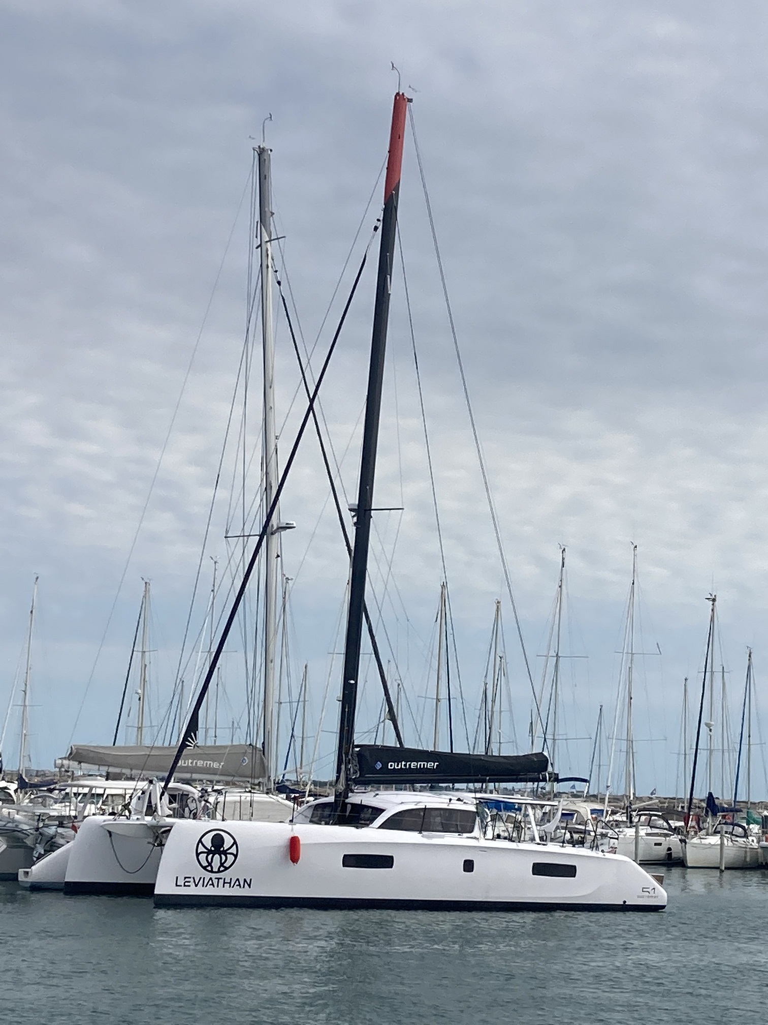 The real action started three days ago with our participation in Outremer Week which provides intensive training in a number of sailing topics both in the classroom and on the water. We eschewed the lectures and signed up for sailing every day in our new boat Leviathan. Technically, the boat is not ours yet. The handover will take place next week. Nonetheless, we are getting a crash course with outstanding professional skippers. The last two days have been quite windy in the 25-30 knot range; the sailing is exhilarating but the docking is challenging. We love our boat and wouldn’t change anything about it. We were originally going to purchase the 45-foot version, but we thought that the 51 would be more comfortable when we have family and friends visiting. We are delighted with our decision. We have two more days of sailing and then some additional activities over the weekend.